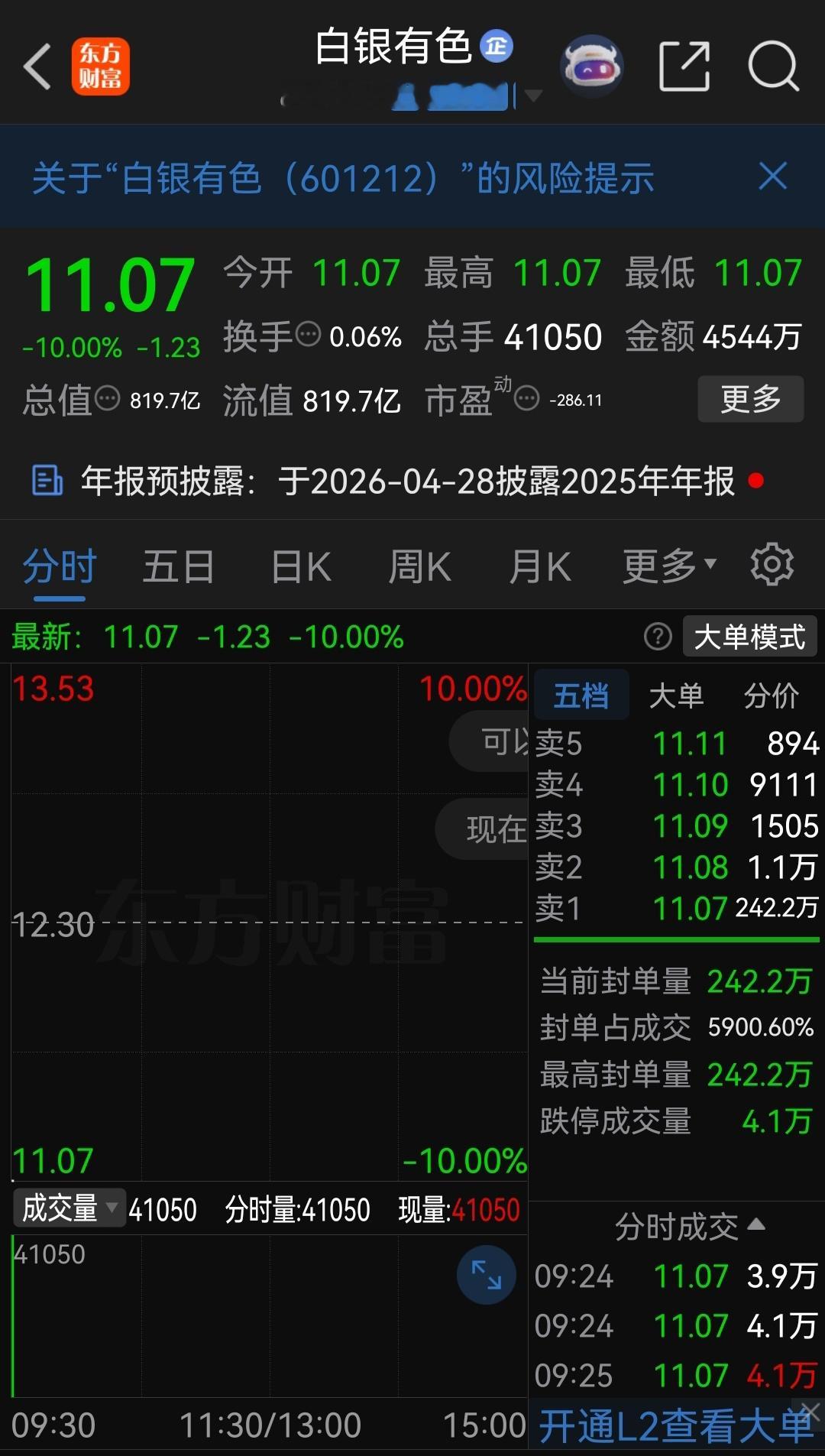 继续一字跌停!