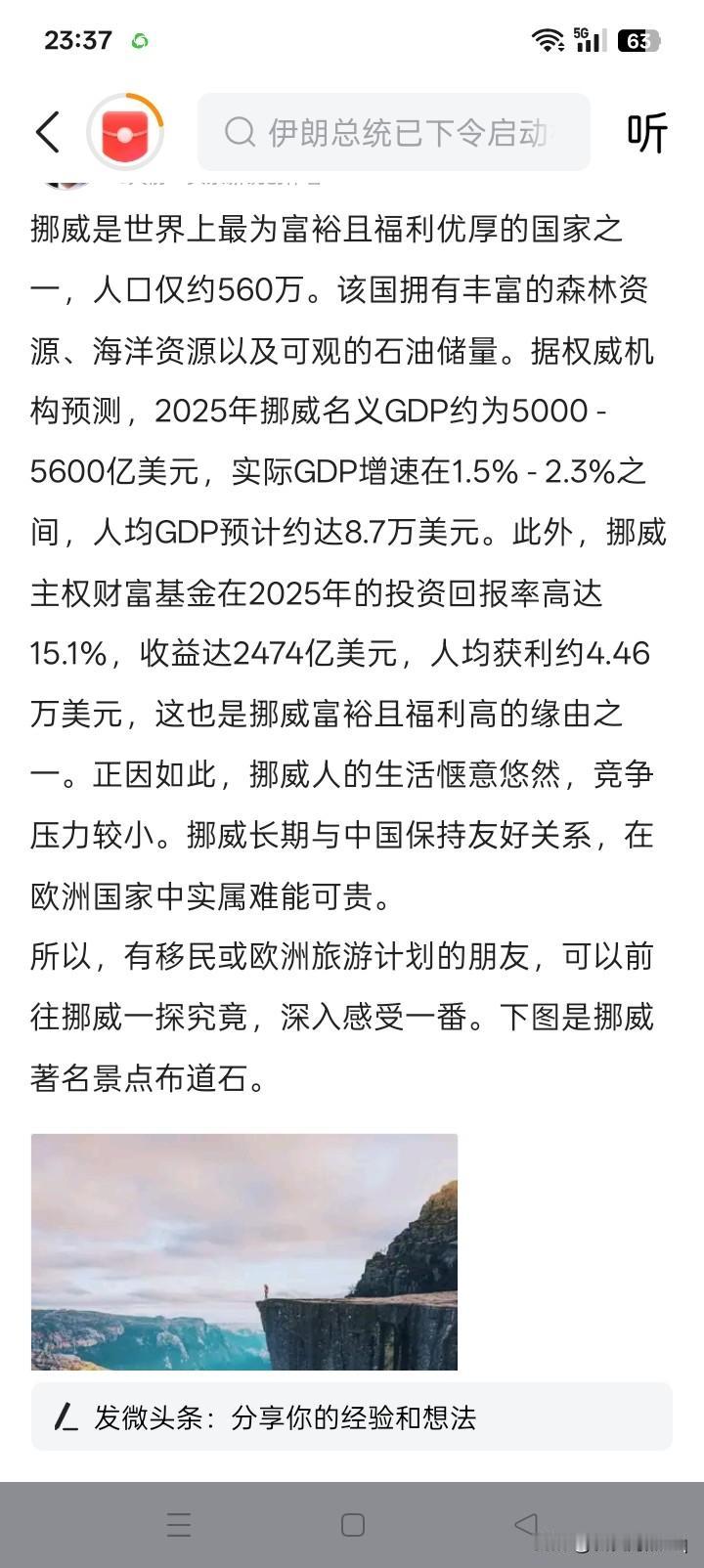 见识富国! 一个仅仅只有562万人口的国家,除了以前和以后的援助,仅仅是在今年的2026年,竟然计划要向乌克兰提供大约85亿美元的援助。如此一算,挪威平均每人向乌克兰提供援助1500美元还多一些,换算成人民币一万还多。这个数字估计让很多人无法想象,甚至是不可思议,即便是富裕,怎么可能如此豪横呢? 然而,可能更不可思议的是,别看挪威的GDP只有5600亿美元,但这个小国家的主权财富基金的一万多亿美元,2025年在全世界各地公司、企业的投资的回报率,竟然高达15.1%,一年净赚2474亿美元,人均获利4.46万美元。 这就是说,挪威可能没有很多军队,也可能是没有很多武器装备,但绝对有很多的钱。