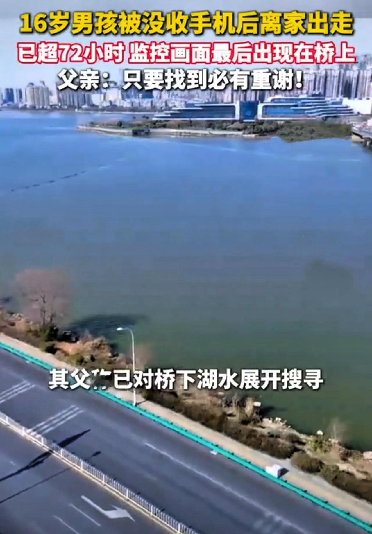 2026年1月26日凌晨4点57分,武汉南湖大桥观景台,16岁高中生李榕烨把自己“藏”进了监控盲区,便没了任何踪迹,这事儿牵动着不少人的心。 没手机没现金,只穿一件黑羽绒服,在低温降雨的夜里,孩子的处境让人忧心不已。 1月24日周六晚,李榕烨通宵刷手机,没顾上学业。转天清晨,父母见他满眼红血丝,便没收手机作为惩戒。面对家长的管教,这个青春期的少年没有吵闹,而是用沉默对抗,一整天扒着电脑,不吃饭不喝水,拒绝和家人交流。 1月26日凌晨,他趁家人熟睡溜出门。监控显示,04:53他出现在楚平桥中段,4分钟后在观景台栏杆旁徘徊,随后就消失在监控覆盖不到的区域。武汉当时正下着雨,气温很低,他身上只有黑羽绒服、藏青带白杠裤子和一双带反光条的灰运动鞋,根本不足以抵御深夜的湿冷。 警方第一时间展开搜寻,无人机升空排查,水上救援队也对桥下2-3米深的水域进行了细致查找。孩子父亲焦急万分,反复念叨着孩子1.72米的身高、戴白框眼镜的特征,盼着能有人提供线索。 这起失联事件,不是简单的青春期叛逆闹剧,而是给所有家庭敲响了亲子沟通的警钟。家长没收手机的初衷是为孩子好,但忽略了青春期孩子的情绪疏导,简单粗暴的方式,反而让孩子关上了沟通的大门。 青春期的孩子需要理解和倾听,管教的同时更要注重方式方法。真心希望李榕烨能早点被找到,平安回家。