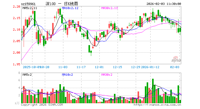 2月3日,截止午间收盘,深100ETF方正富邦(159961)涨0.14%,报2.089元,成交额162.32万元。深100ETF方正富邦(159961)重仓股方面,宁德时代截止午盘跌1.04%,中际旭创跌1.06%,新易盛跌4.13%,美的集团涨0.09%,东方财富涨0.27%,立讯精密跌0.54%,阳光电源跌0.17%,比亚迪跌0.74%,五粮液跌0.08%,胜宏科技跌1.85%。
