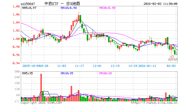 中药ETF(159647)业绩比较基准为中证中药指数收益率,管理人为鹏华基金管理有限公司,基金经理为张羽翔、林嵩,成立(2022-07-20)以来回报为-3.97%,近一个月回报为-0.96%。