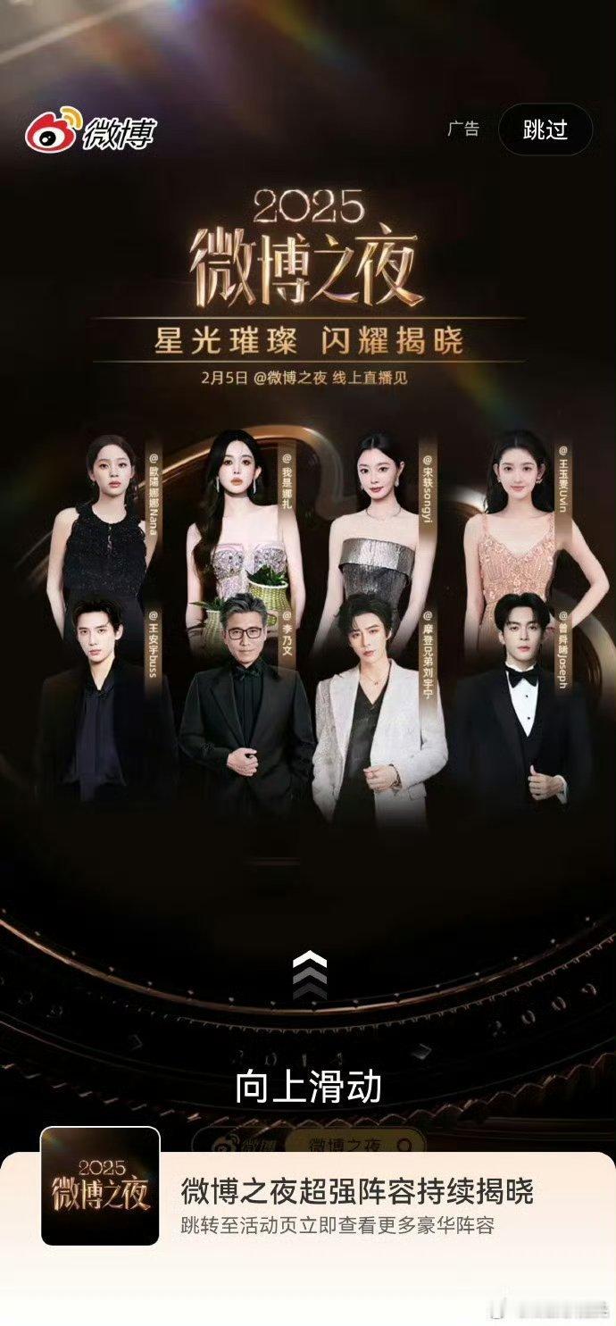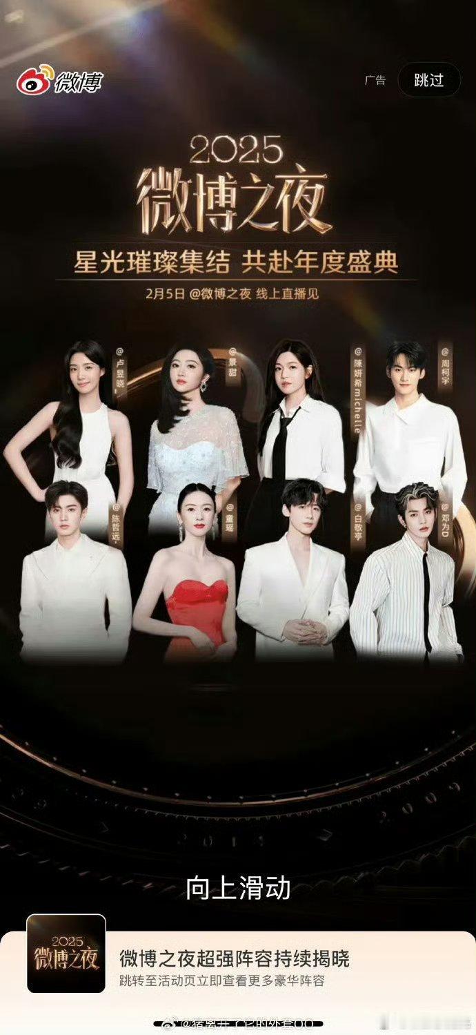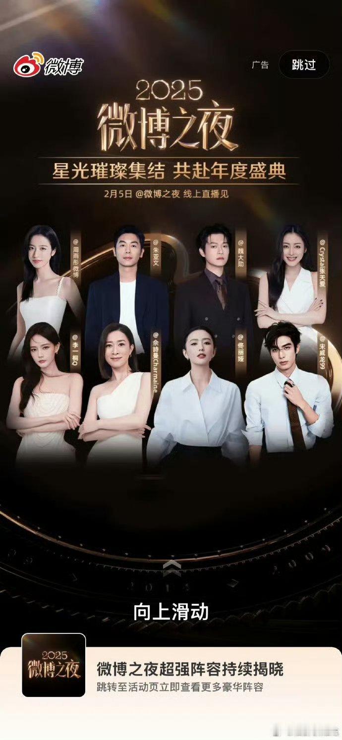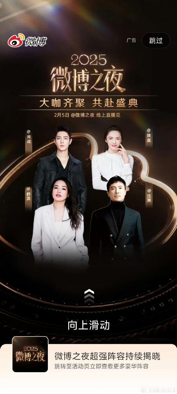 2025微博之夜开屏,只有沈腾,舒淇,姚晨,肖战,这张是“大咖齐聚”!其他开屏都是“星光汇聚”“星光集结”