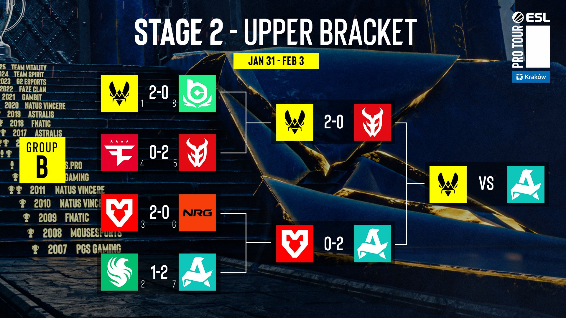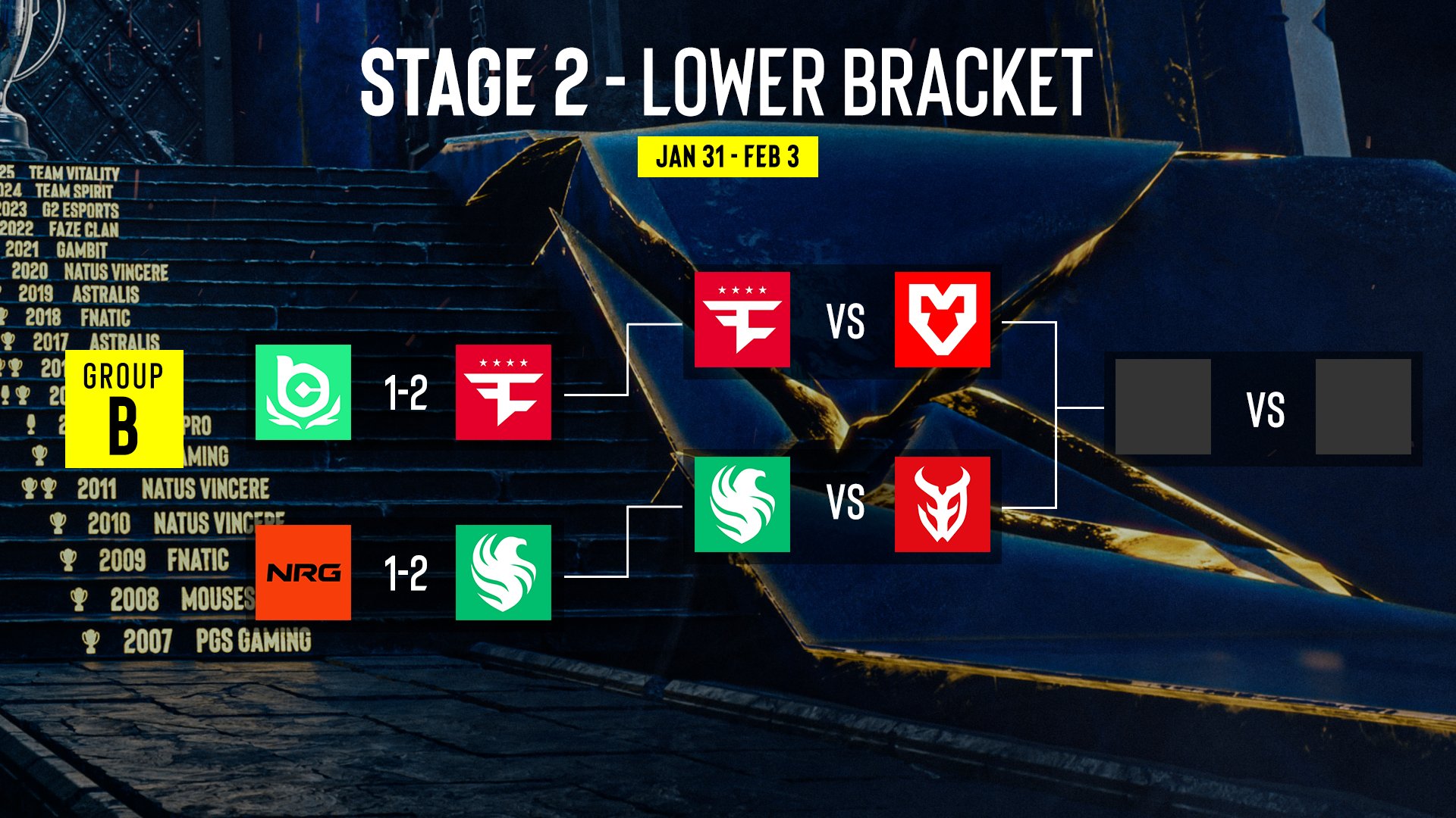 G2vsSpirit/MOUZ与FaZe之间胜者vsFalcons与3DMAX之间胜者