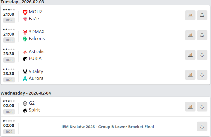 虎扑02月03日讯IEM克拉科夫站第二阶段小组赛第四日赛程预告: