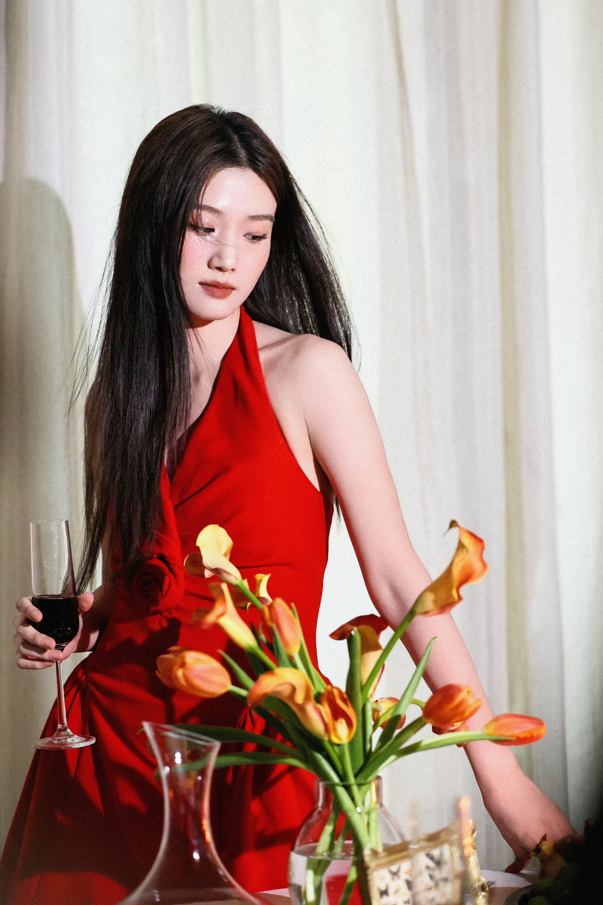 卢昱晓红裙穿搭写真,入青云明意可冷酷可娇俏。卢昱晓