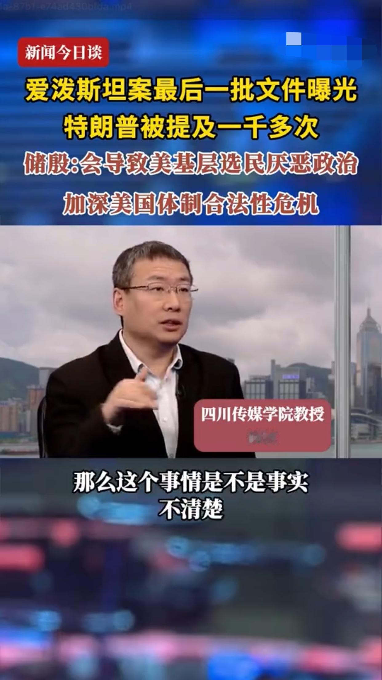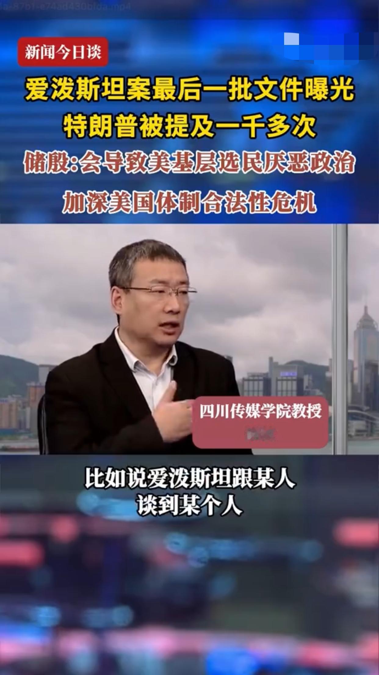 四川传媒学院教授储殷对于爱泼斯坦案表达了自己的看法:“这批文件是根据爱泼斯坦的各种记录总结出来的,它是爱泼斯坦说出来的东西,但这是不是事实,还需要调查,比如爱泼斯坦跟某人谈到某个人,那么这个事情是不是事实不清楚,但是爱泼斯坦谈过了,它就要把它报出来,我不是为他们开脱,特朗普被提及一千多次,其实这个东西不一定客观,比如爱泼斯坦谈到特朗普,他就会进来,从目前来看,绝大多数人没有犯罪事实,有个别像比尔·盖茨,可能是有一些事是被坐实了,就可以印证他之前突然莫名其妙的离婚。”