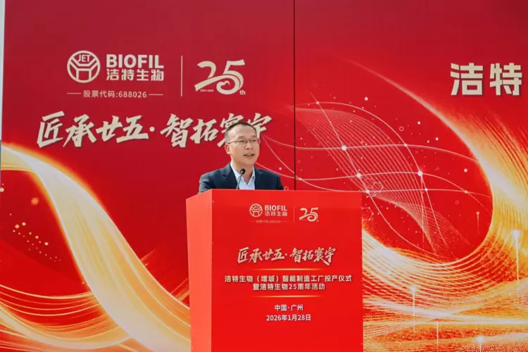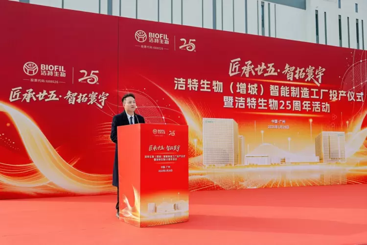 2026年1月28日,以“匠承廿五·智拓寰宇”为主题的洁特生物(增城)智能制造工厂投产仪式暨洁特生物25周年活动,在广州增城经济技术开发区盛大举行。恰逢企业成立二十五周年,这座按工业4.0智能制造标准规划设计、规划总建筑面积330,000㎡、设计年产值27亿元的“灯塔工厂”正式投运,这是洁特生物在生命科学领域迈向智能制造升级的关键一跃,也是其25载技术积淀与创新精神的薪火相传,更是响应国家智能制造战略、锚定全球市场布局的重要里程碑。