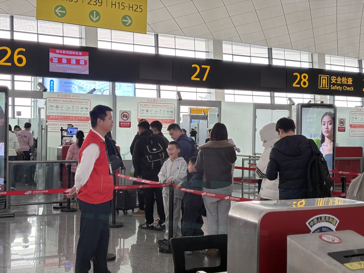 根据郑州机场的航班计划,郑州机场春运首日航班计划为681架次,比春运开始前的2月1日净增加将近50架次,这个航班的密度,在郑州机场T2航站楼的值机区和安检区最为明显,各值机区域的工作人员熟练地为旅客办理登机牌、托运行李等手续,位于四层出发厅的总服务台工作人员,解答着旅客关心的问题。郑州机场从17个保障单位的报名者中,选出了34名航空出行业务骨干组成了郑州机场“我帮您”服务团队,主要在三个地方提供服务:一个是四层出发厅的中心问询台,一个是安检待检区,另一个是二层国内到达口。如果在楼内遇到有穿红马甲的员工,乘客尽管问询,他们会随时停下来为旅客提供服务。