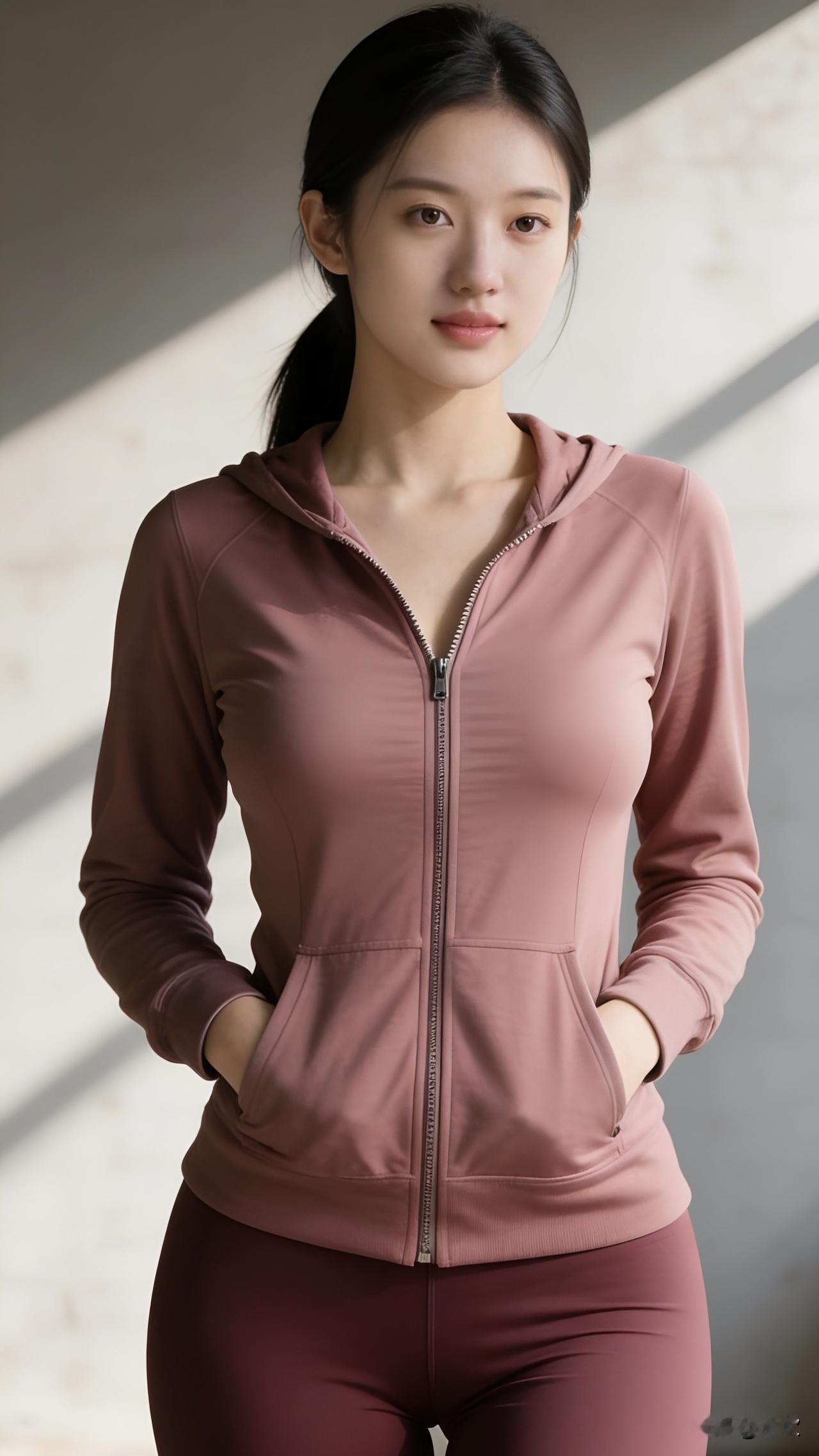 豆沙粉的运动外套裹着柔和的线条,她双手插兜站在光影交错的墙边,目光里带着舒展的松弛感。浅灰墙面被阳光切割出利落的明暗纹路,和她身上柔软的衣料形成温柔的对比。 我们总在忙碌的生活里把运动当成任务,却忘了穿上舒适的衣服、站在阳光下的时刻,本身就是一种治愈。她安静站着的样子,像在提醒我们:不必急着奔跑,只要愿意动身,就是和自己的身体好好相处的开始。 你有多久没有换上舒服的运动服,好好出一次汗了? 灰色运动套装女 浅灰运动风穿搭 灰紫运动穿搭 显白运动穿搭 咖色运动风穿搭 冬日豆沙粉穿搭 豆沙粉穿搭