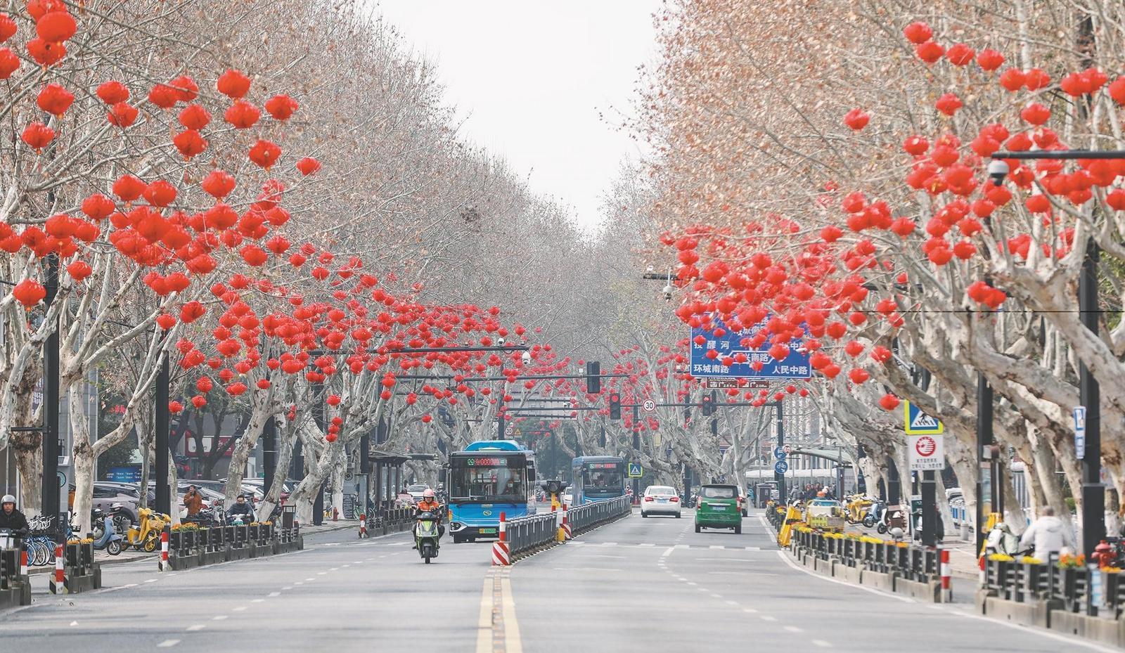 目前,春节氛围布置工作整体即将完成,并一直保存至元宵节后才会予以拆除。