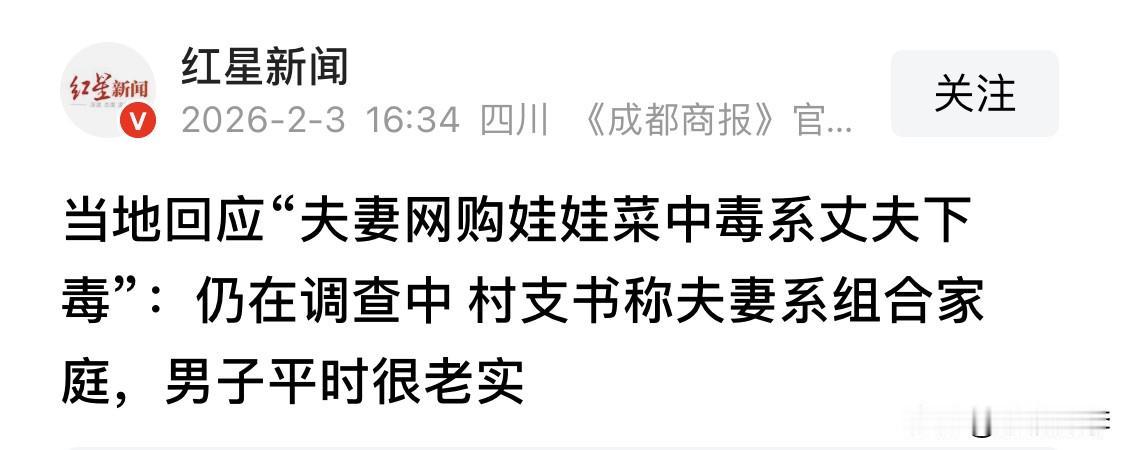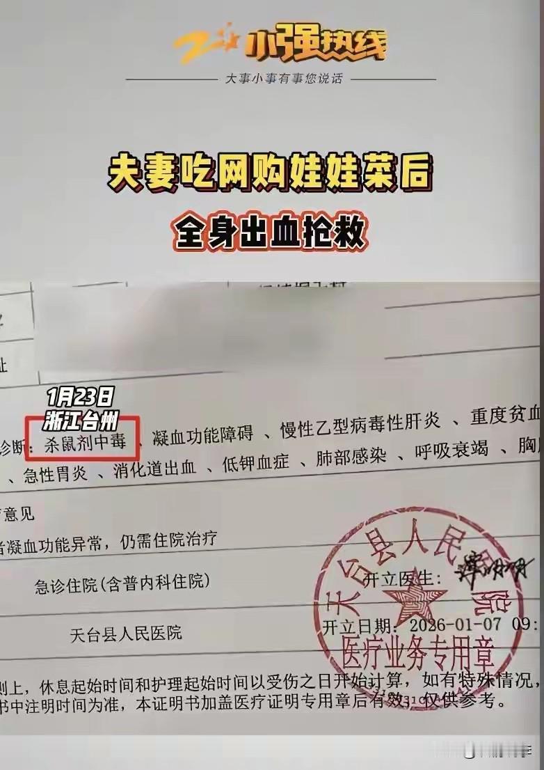 反转来了! 可怜的店主……这个锅背的…… 还记得前段时间的两夫妻网购娃娃菜中毒住院吗?天台县夫妻俩网购娃娃菜双双中毒住院后,又是ICU抢救,又是转院的,女方被诊断为“杀鼠剂中毒,凝血功能障碍,慢性乙肝,重度贫血”等等甚至“肺部感染、呼吸衰竭”。 1月7日转院到天台县医院,1月12日夫妻俩报警,警方从娃娃菜中检测出老鼠药,后来调查的毒源是包裹娃娃菜的旧报纸在回收储存中沾染杀鼠剂…… 天台县公安局受理了该夫妻报称的涉事电商商家“生产、销售有毒有害食品案”。 1月26日,涉事商家下架失联,平台已提供店主信息,警方正追查全链条责任。 也就是说,店主被注销了网店, 现在,惊天反转来了! 随着进一步侦查,发现毒源并非店主包裹娃娃菜的报纸有毒,下毒的人竟然是杨女士的丈夫陈某波! 很想问一句,这个店家究竟是招谁惹谁了?自从这个“娃娃菜有毒”的新闻曝光之后,网友们也吓得不敢在平台上买菜了,可以说是风声鹤唳草木皆兵,造成了极大的坏影响。 现在可倒好,下毒的人竟然是丈夫?你说可笑不可笑?自己给老婆下毒,还污蔑店主包裹娃娃菜的报纸有毒?玩笑不是这么开的吧?只能说店主点儿太背了,这样的锅都能砸到头上! 目前陈某波被采取刑事强制措施了,不管他怎么被判刑,只想知道,店主的冤情怎么诉?