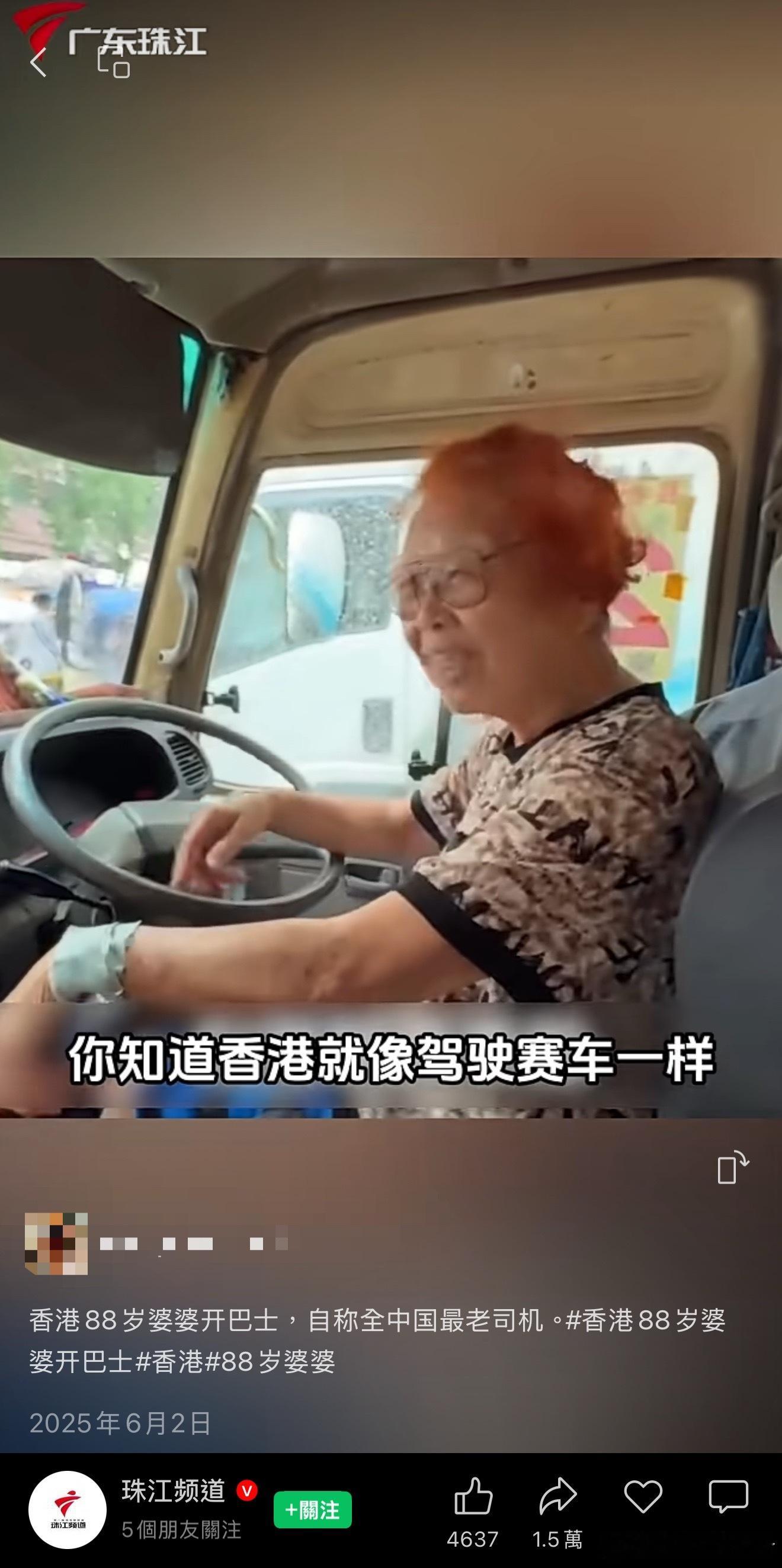 今天看了个视频是采访一位香港的小巴驾驶员她今年已经88岁了