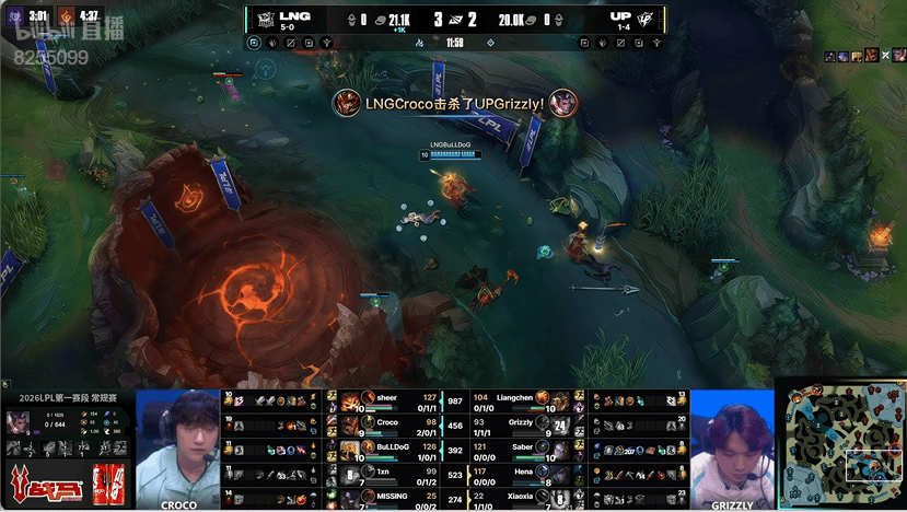 11分钟:双方河道爆发团战LNG抢下小龙后打出二换二