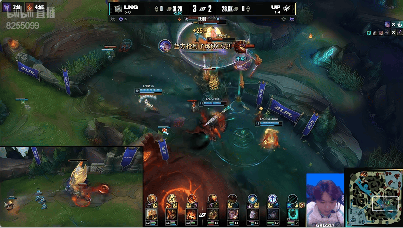 24分钟:LNG中路再次打出小团灭拿到大龙