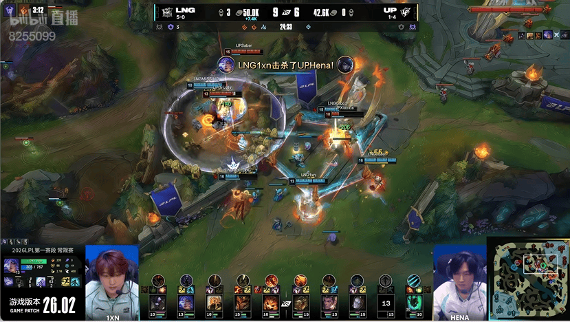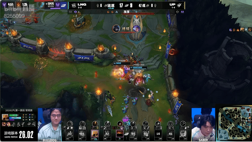 26分钟:LNG携大龙buff推上高地一波结束比赛