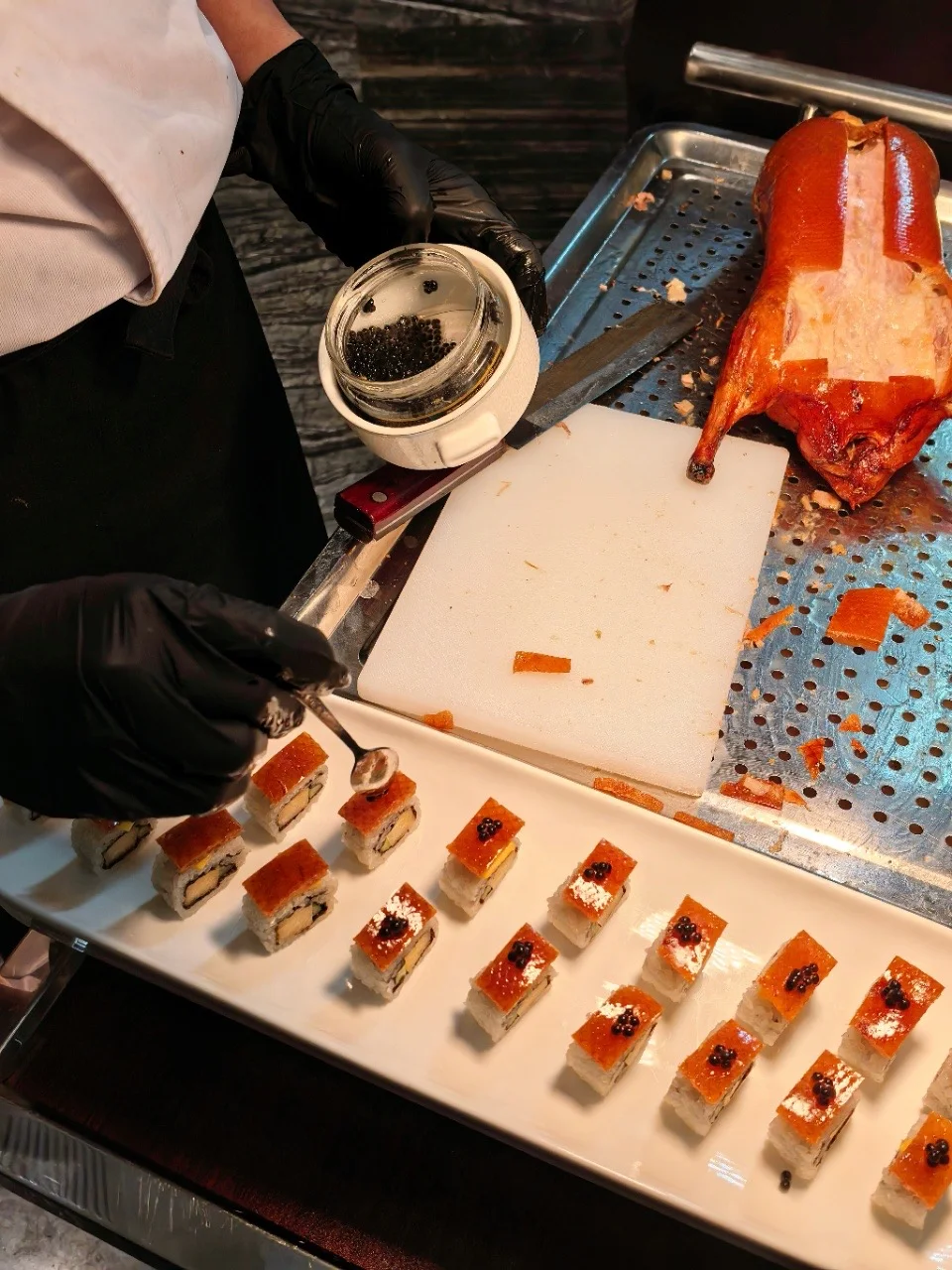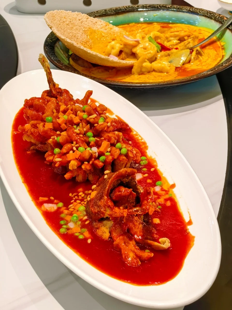 大厅活蹦乱跳的海产品,主打现捞现做。招牌菜更是口感颜值兼备:外酥里嫩的松鼠桂鱼、清香鲜嫩的金桔雪花牛肉粒、笑香到骨子里的北京酥不腻烤鸭、酥香入味的匠心秘制神仙鸡、好吃到唆手指的金汤蒜蓉罗氏虾……