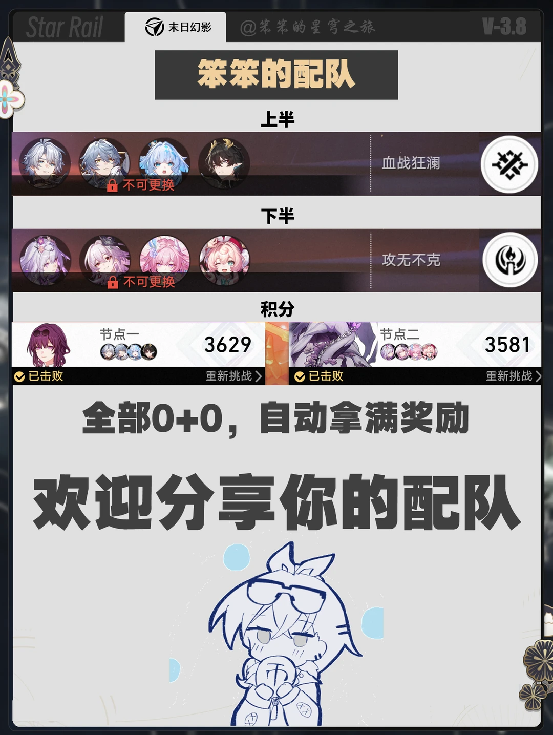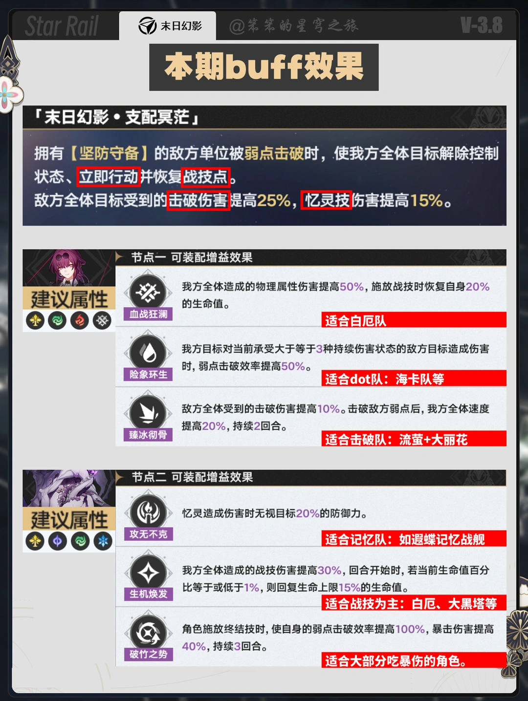 🐱大家好,我是笨笨的铲屎官 末日幻影更新了 本期击破队和记忆战舰输出有增益 利好流萤击破队和遐蝶队等 甚至是dot队、白厄物理队都有buff 笨笨做了详细的罗列 希望对你有用哦 笨笨全员0+0自动通关的 你使用的配队是什么