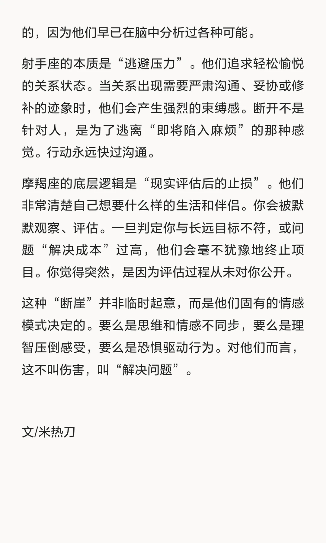 这几个星座的“断崖”并非临时起意,而是他们固有的情感模式决定的。要么是思维和情感不同步,要么是理智压倒感受,要么是恐惧驱动行为。对他们而言,这不叫伤害,叫“解决问题”。