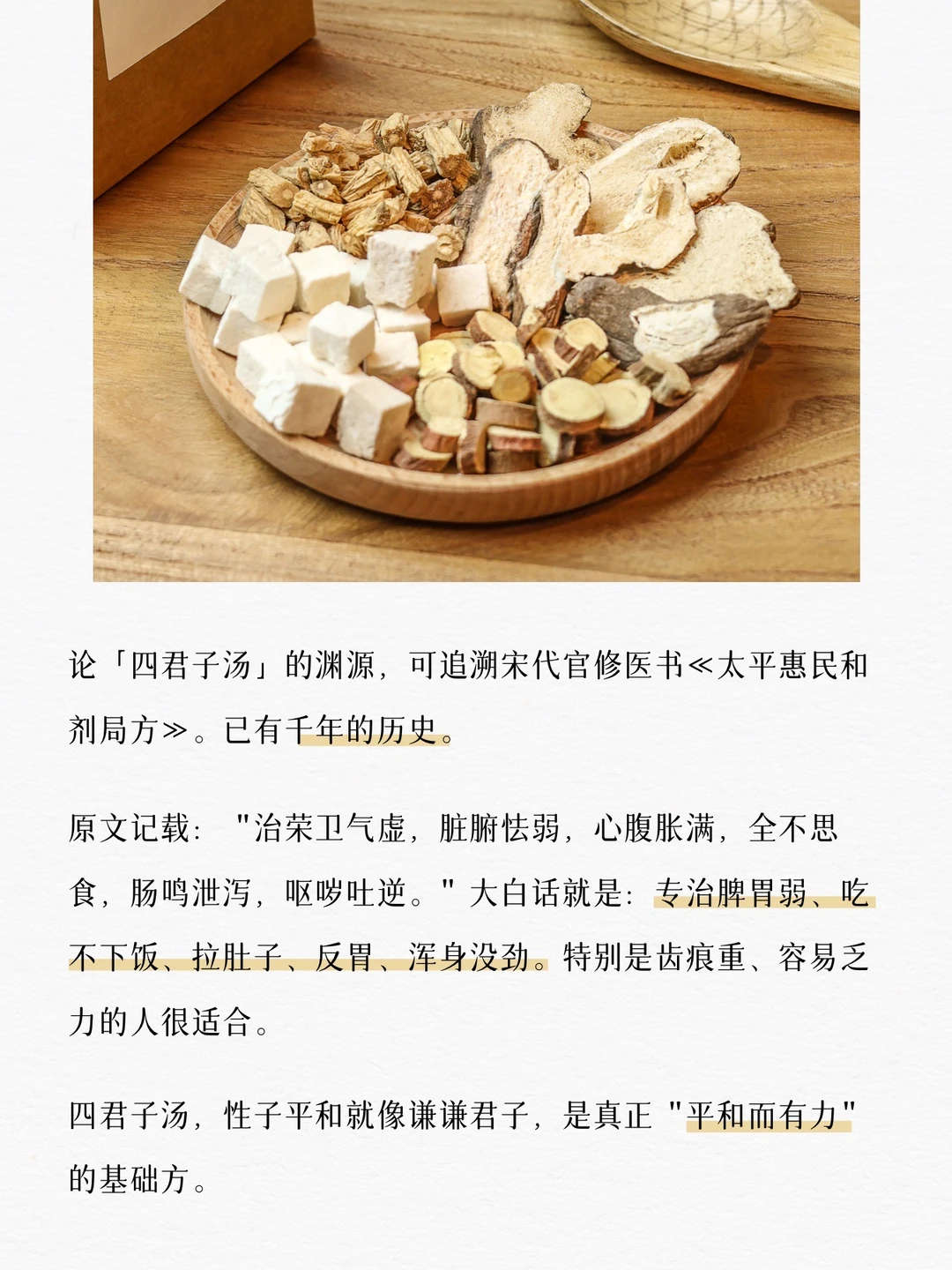 论「四君子汤」的渊源,可追溯宋代官修医书《太平惠民和剂局方》。已有千年的历史。