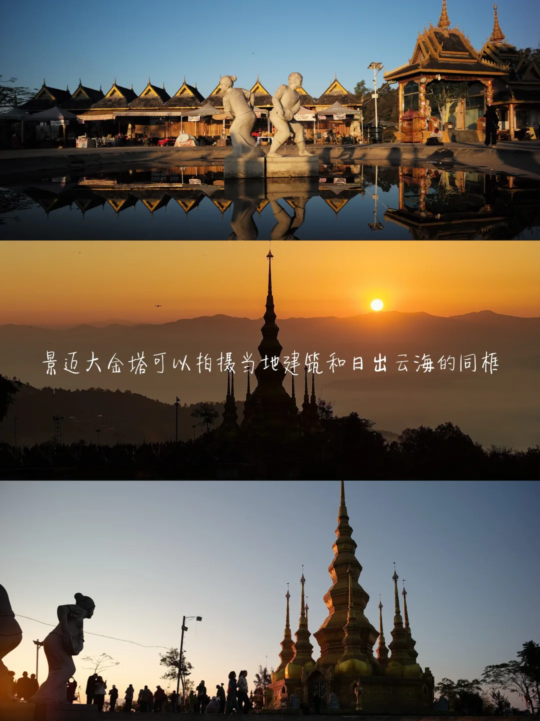 🌅关于日出,网上很多日出观景点,其实没有任何意义,就看云海山脉和太阳,哪里不能看?非得跑这么大老远看🤣 所以日出我只推荐 景迈大寨的大金塔,翁基这些可以拍到日出和当地特色建筑的机位,其他几天时间 好好安心睡觉吧补充体力,拍日落,我推荐芒市以及翁基和糯干的