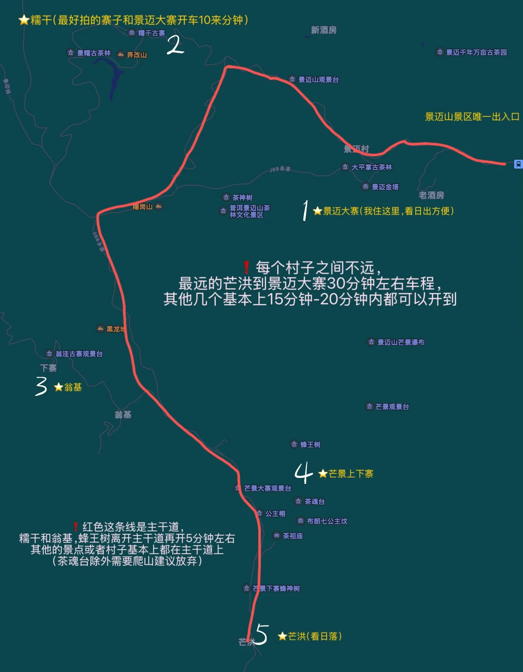 🛖寨子:从先后顺序来讲(不管你从版纳还是普洱来顺序都是一样的,因为出入口都是同一个,每个村子基本上一个小时都可以通关)