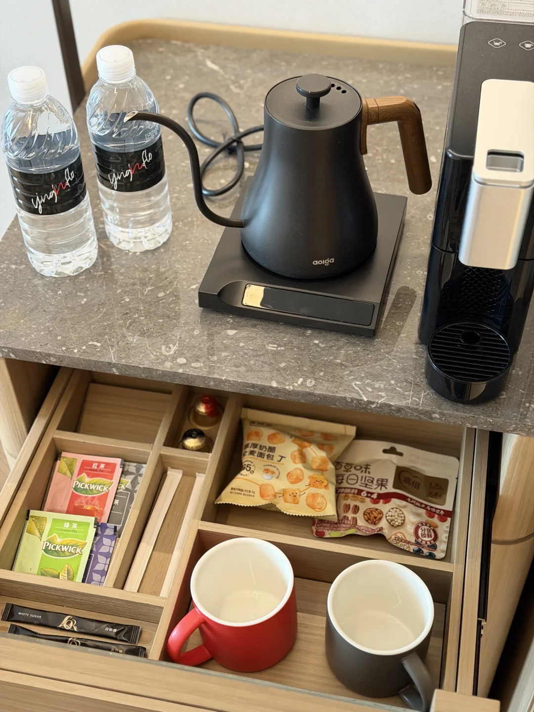 出酒店步行10分钟就到南京站,去红山森林动物园也只要10分钟,楼下还有马上通车的地铁6号线,周边商场扎堆,逛吃出行都巨方便! 13楼的高空花园真的是我的心头爱🌿 超大露台超出片,随手一拍都是氛围感拉满的城市天际线。 大堂的巨幅手绘地图还标了40个南京本地点位,拿着它秒变南京通! 房间里也藏着惊喜,胶囊咖啡机、恒温茶壶、高速吹风机一应俱全。 我住的房间窗外就是红山森林动物园🦚 24小时健身房、洗衣房也都安排得明明白白,免费咖啡和养生茶更是戳中我这个懒人的心巴!