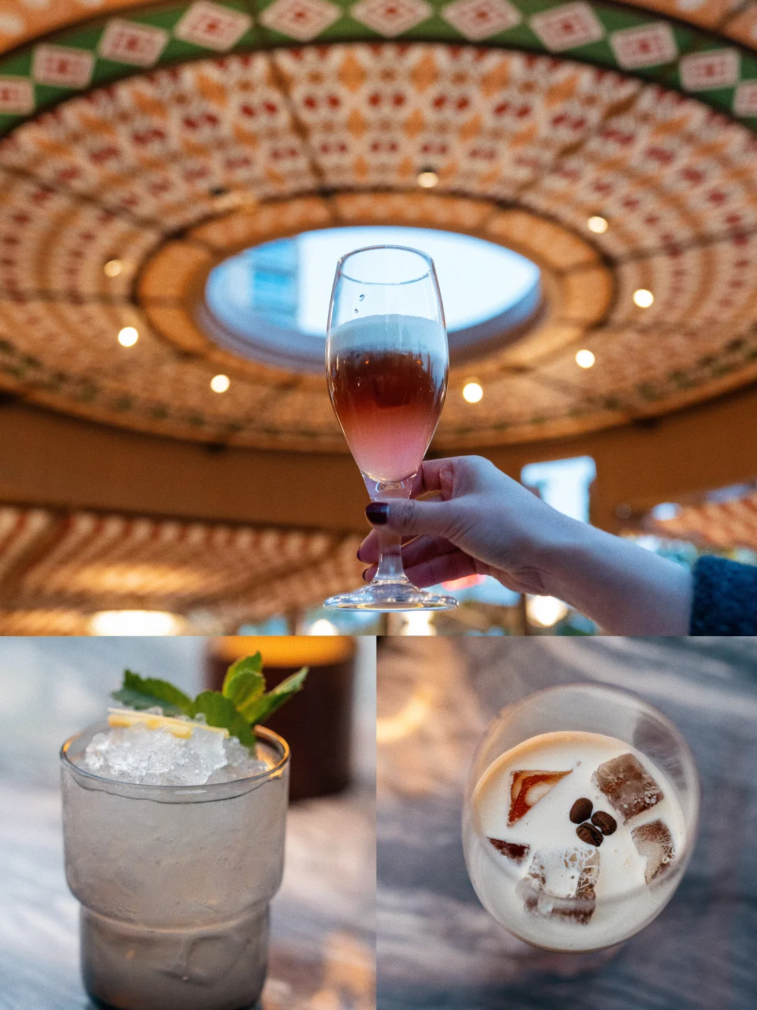 花园在SUMA姝玛酒吧。楼下车水马龙一片繁忙,花园露台圆月高悬、烤物飘香🥓可以畅享自助美食,火腿、羊排、各类多巴胺应季水果🫐🍓🍊可以免费点一杯不带酒精的“粉红云顶”🍸让若有似无的咖啡香气,带你穿行在海拔2000米的昆明夜空