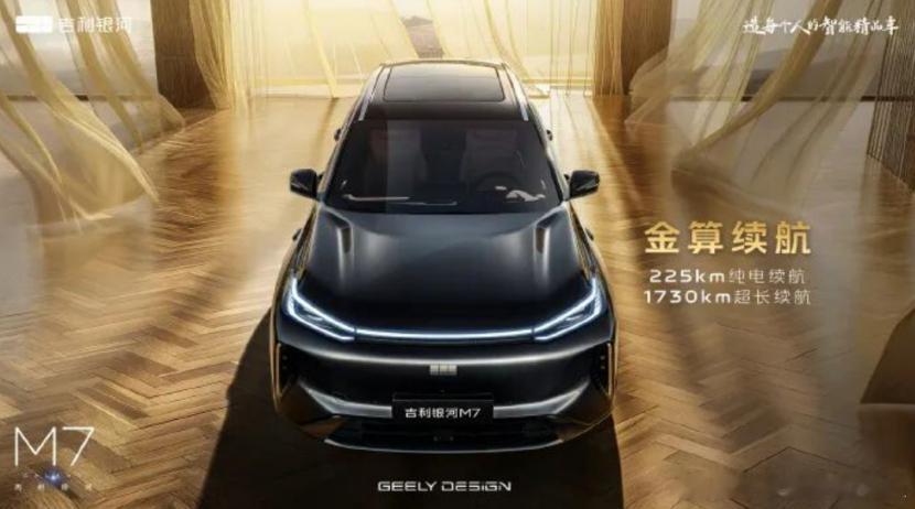 其中,续航方面,银河M7的纯电续航里程为225km,综合续航里程为1730km,虽然纯电续航看起来一般,但适配大家的日常通勤以及中长途出行是完全没有问题的,更何况是在15万级的产品序列之中。