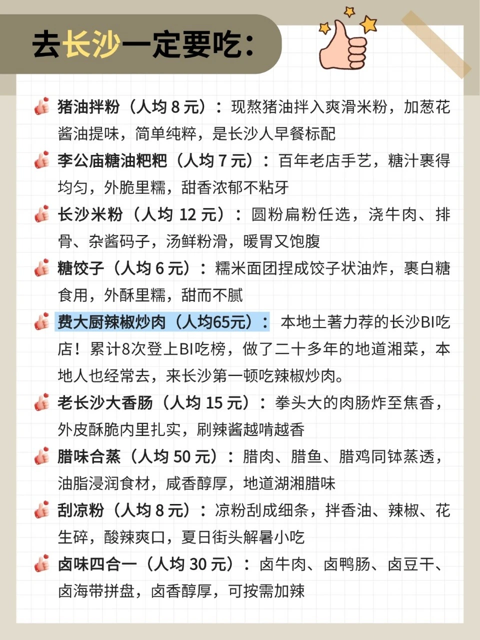 和朋友从长沙三日游已回🤓 说句大实话,长沙的好玩程度真的没得说 但有个前提,那就是提前做好攻略、规划好路线😎 这篇攻略结合了长沙土著朋友的建议和自己的亲身经验,🉑放心抄作业~ 来长沙第一顿一定要去吃辣椒炒肉! 土著带路去吃的👉费大厨辣椒炒肉,真的太好吃了❗️辣椒炒肉真的超级下饭🍚,还点了香酥大鲫鱼、大厨手撕鸡,青椒皮蛋擂茄子,去吃了才会懂有多香!