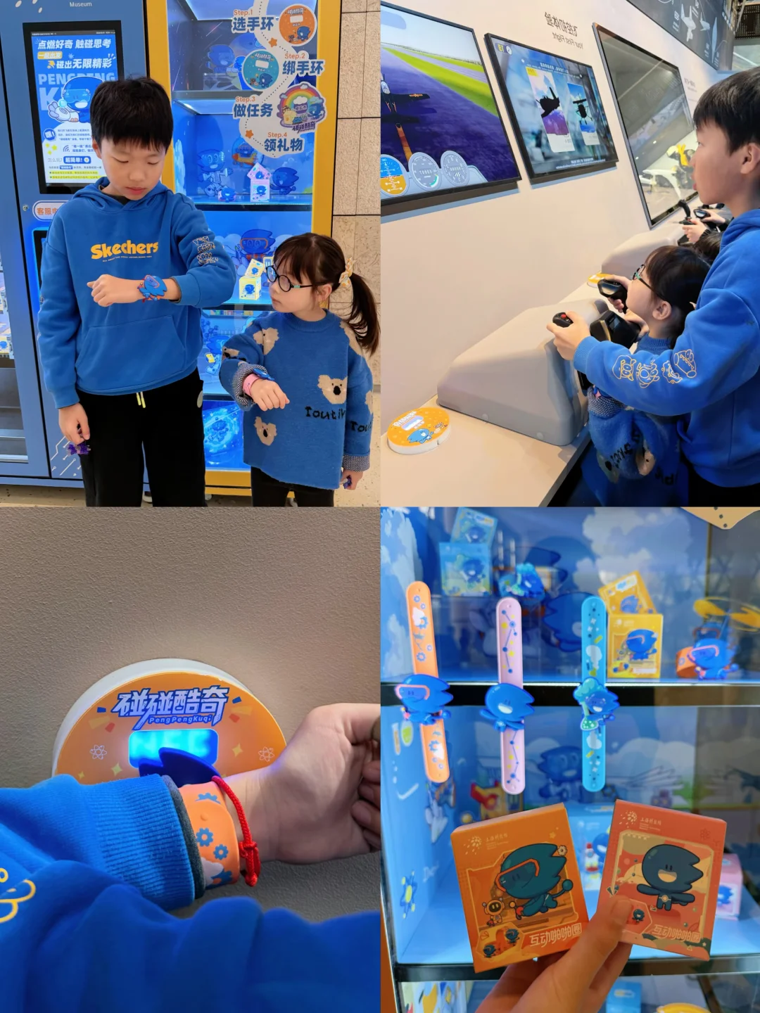 碰碰酷奇手环,全场超50+特色互动项边都设有打💳机,边集邮边摄入知识点,集满章还能换🎁,增加逛展积极性
