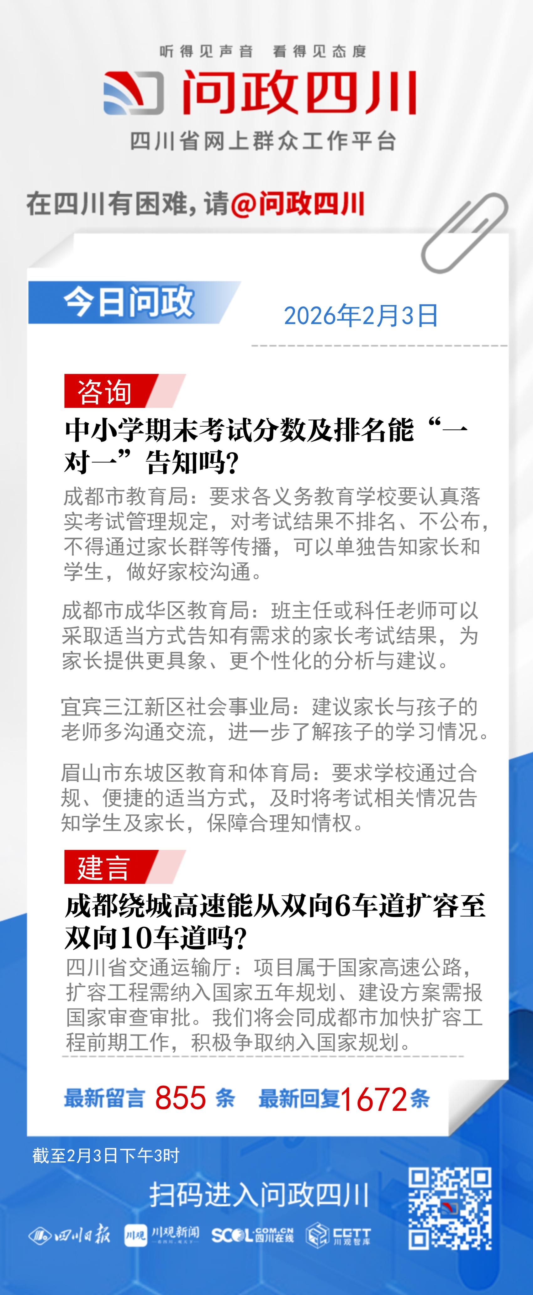 有家长通过问政四川表达诉求:“家长尊重老师们的辛勤付出,也理解相关政策的初衷,但还是希望能够精准掌握孩子的学习情况,了解孩子的分数和排名,更好地配合学校做好课后辅导与学业规划,实现家长、学校、教育部门三方互助,形成教育合力,共同助力孩子的学习与成长”。