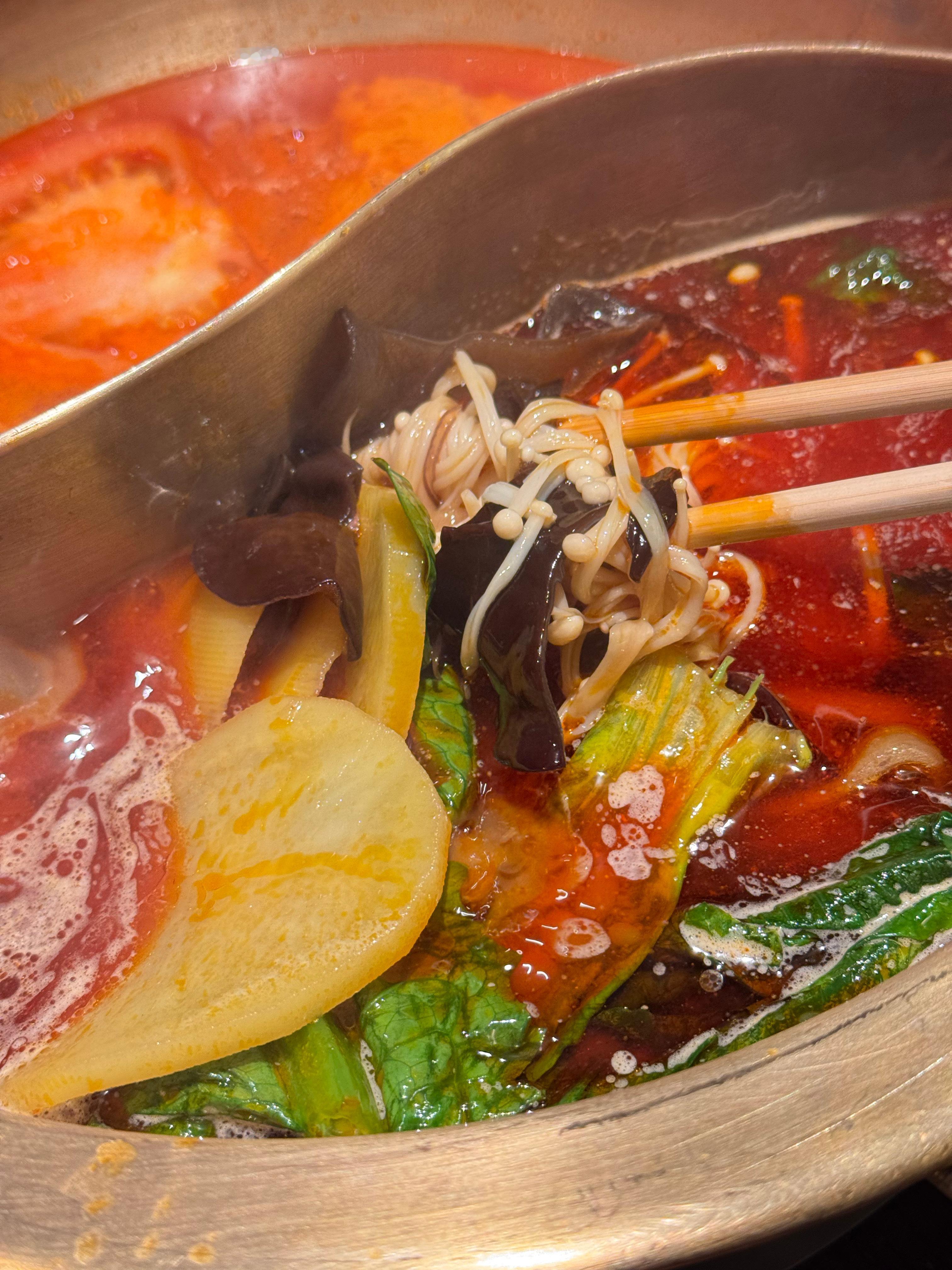 我两家爱吃的店竟是为了锅底菜和叶子打川川的锅底,是那种锅端上来锅底菜可以直接吃的,58的双锅底送这么多锅底菜,川耳土豆鸭血川粉都能当冒菜第一时间满足胃😌毛肚和它家沙冰也很好吃