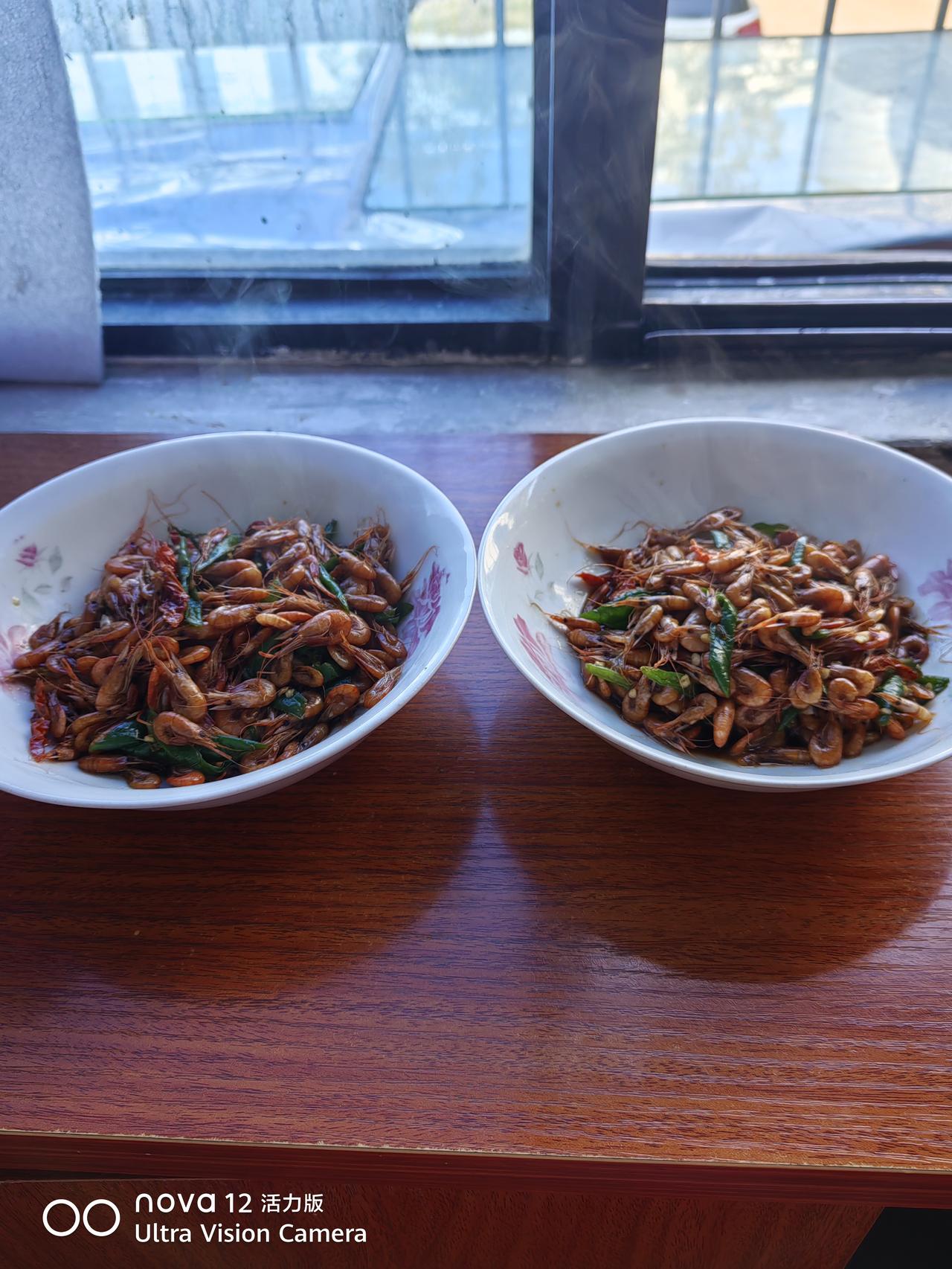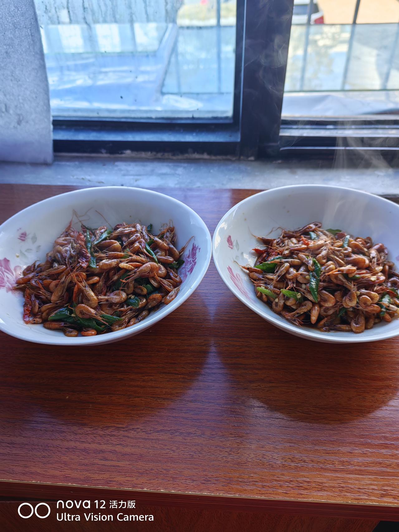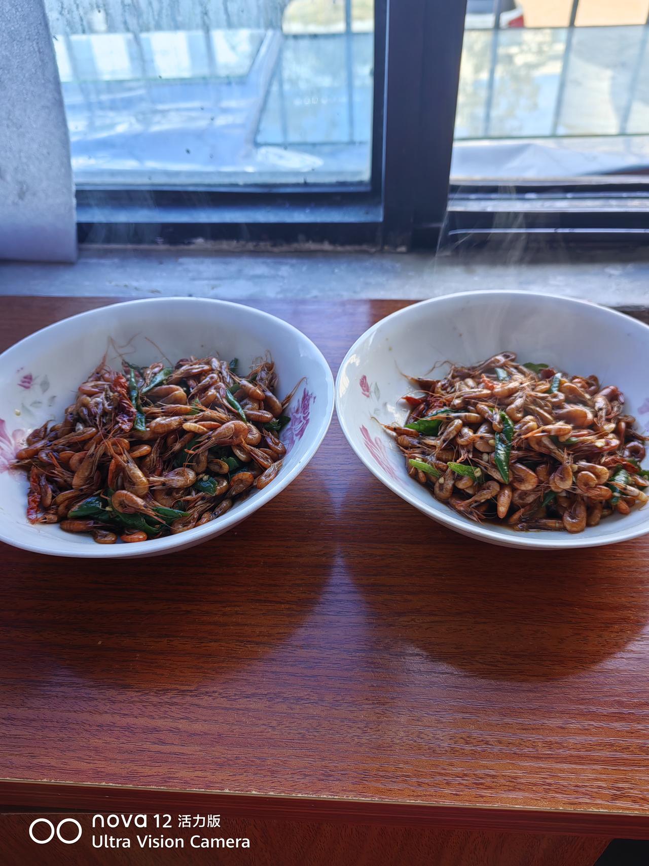 今天买菜,看到新鲜虾米,还好,买了一点,放了青红椒。装了两个半碗。吃了两餐。