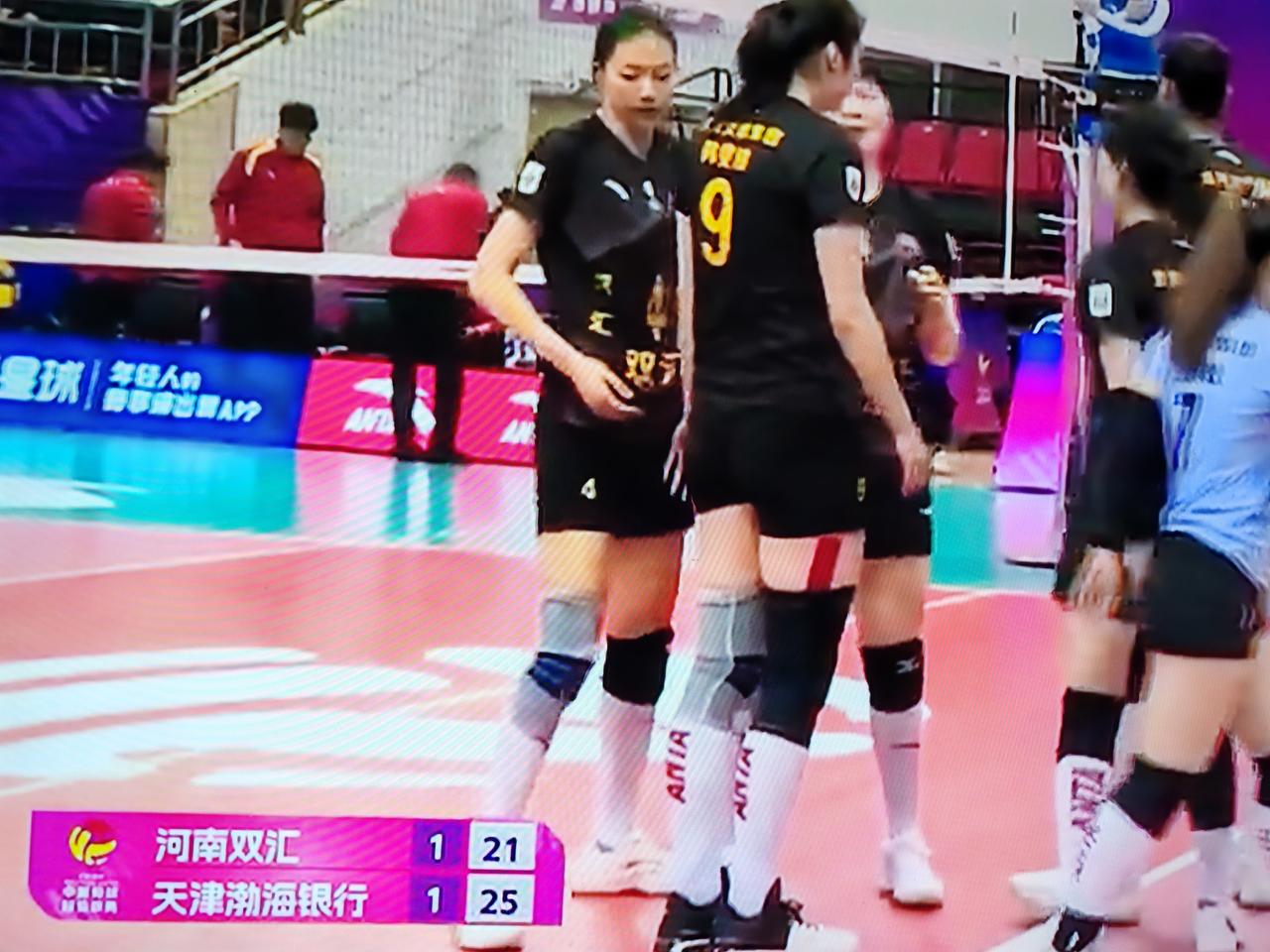 女排排超联赛第十四轮,天津女排对阵河南女排,前两局天津女排19:25,25:19,大比分1:1,比赛进入第三局,天津女排18:14领先,河南队发球失误19:14,孟豆发球,刘鑫吊球被拦19:15,蔡晓晴发球,刘鑫扣球被拦19:16,天津女排叫暂停了。段梦可扣球得分19:17,第一局天津女排就是在蔡晓晴发球轮卡轮,河南队扣球得分19:18,天津女排又卡轮了。天津女排叫了第二次暂停,天津女排刘鑫要是打不出来,就困难了,蔡晓晴发球失误20:18,天津女排终于渡轮。刘美君发球,刘美君防守起球,娜塔莉娅扣球得分21:18,刘美君发球,蔡晓晴扣球得分21:19,娜塔莉娅扣球得分22:19,夏思佳发球失误22:20,段梦可发球,娜塔莉娅扣球被拦22:21,段梦可发球失误23:21,刘鑫发球,马丁快球得分24:21,刘鑫发球,马丁拦网得分25:21,天津女排拿下第三局,大比分2:1领先,今天天津女排发挥最好的是马丁。天津女排 河南女排
