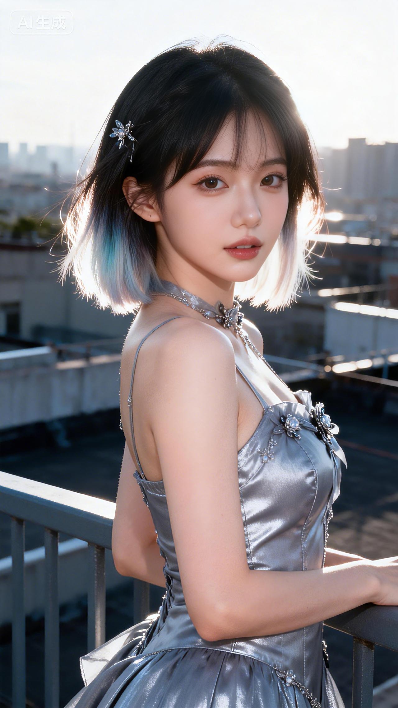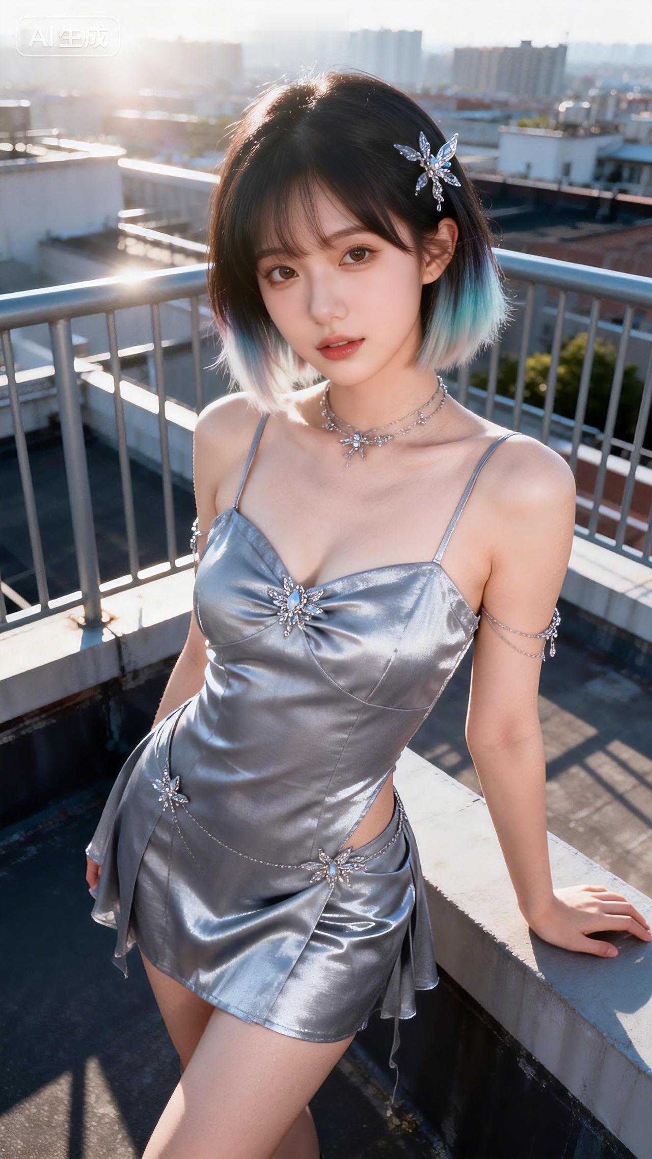 霓虹辉映接星光,短发如风向远方。豆包 壁纸