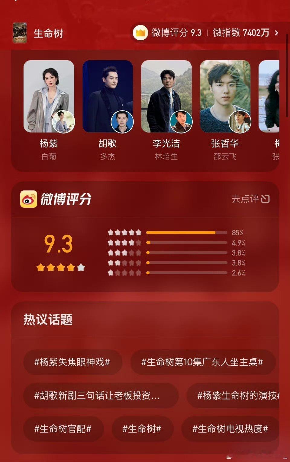 生命树微博开分9.3口碑爆了!微博开分9.3成2026TOP1,名场面破圈,杨紫胡歌等演技稳,配角有血有肉,入股不亏!