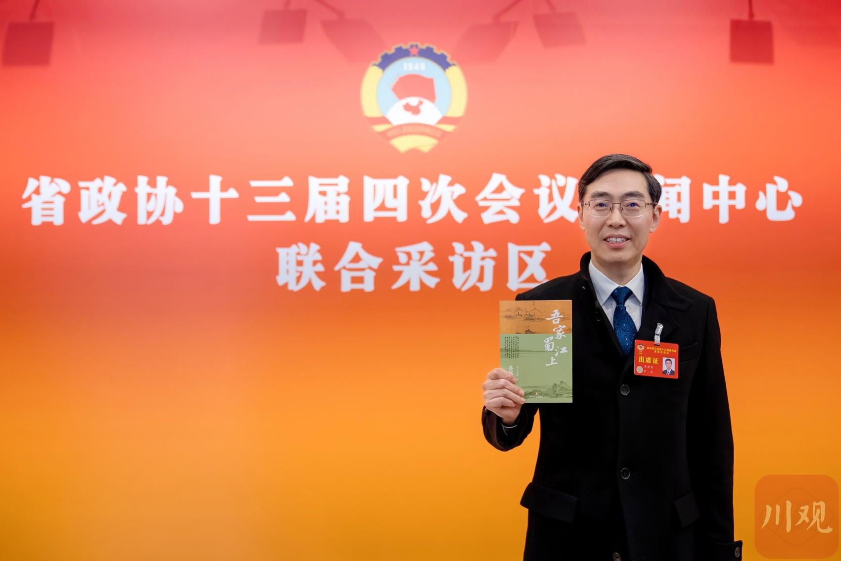 省政协委员、眉山市政协主席黄剑东带来一本《吾家蜀江上:苏轼在眉山》。卢春阳摄