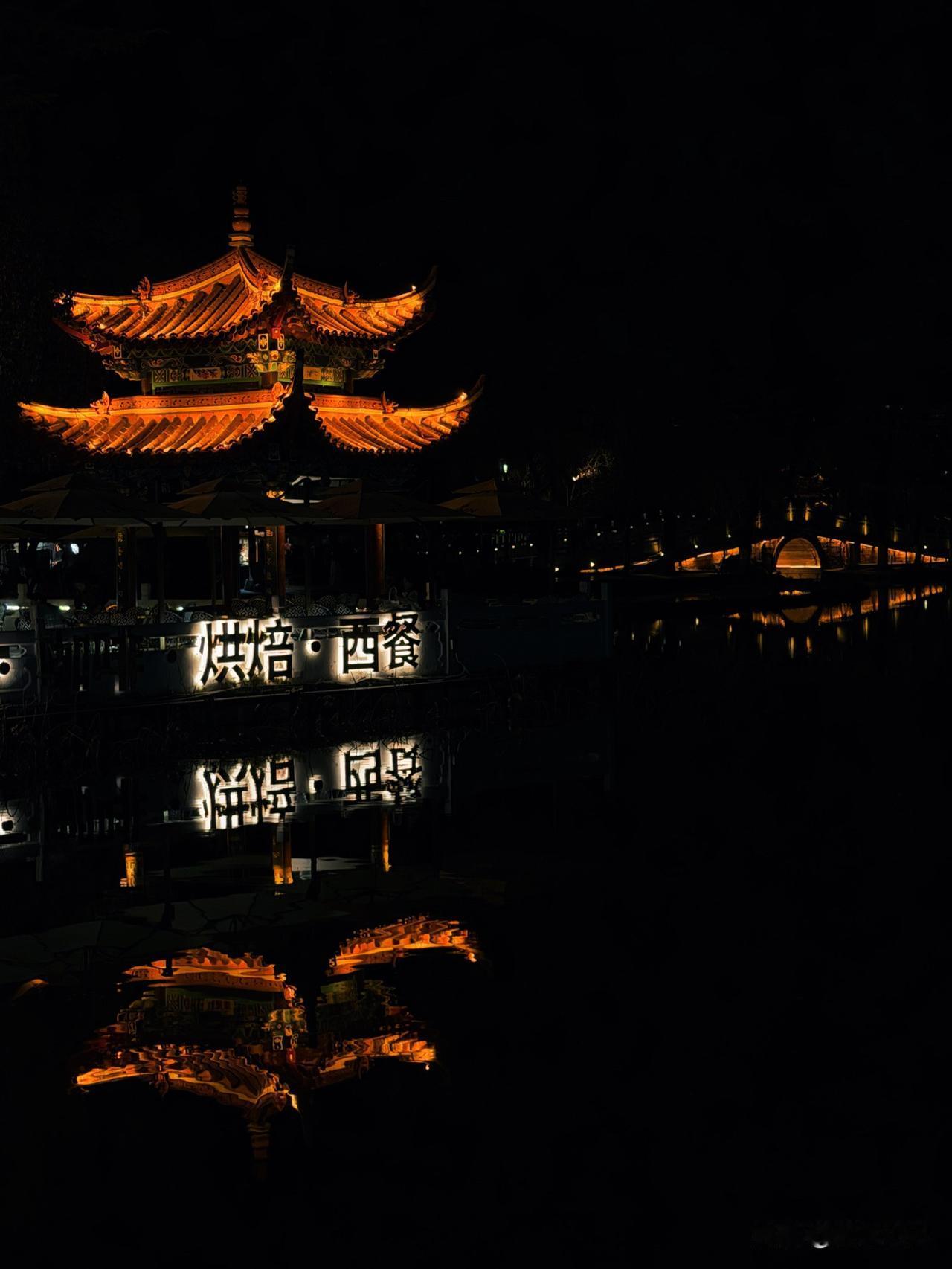 夜游翠湖,邂逅别样景致。灯影于水面涟漪间荡漾,搅碎一湖流光。