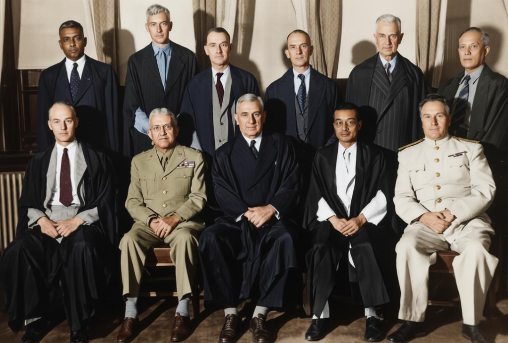 这张照片是1946年远东国际军事法庭11国法官的官方合影,前排右二的梅汝璈作为中国籍法官,是这一历史时刻中中国维护民族正义的核心代表。 远东国际军事法庭由中、美、英、苏、法等11个二战战胜国的法官组成,专门负责审判日本甲级战犯。梅汝璈作为中国政府选派的法官,肩负着为3500万中国受难同胞伸张正义的使命。