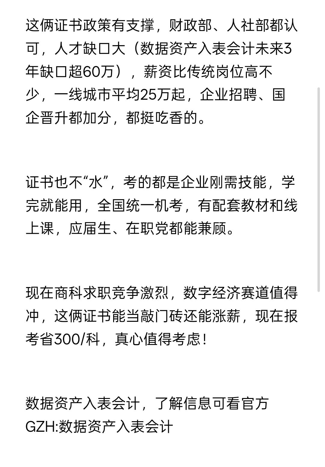 这俩证书政策有支撑,财政部、人社部都认可,人才缺口大(数据资产入表会计未来3年缺口超60万),薪资比传统岗位高不少,一线城市平均25万起,企业招聘、国企晋升都加分,都挺吃香的。