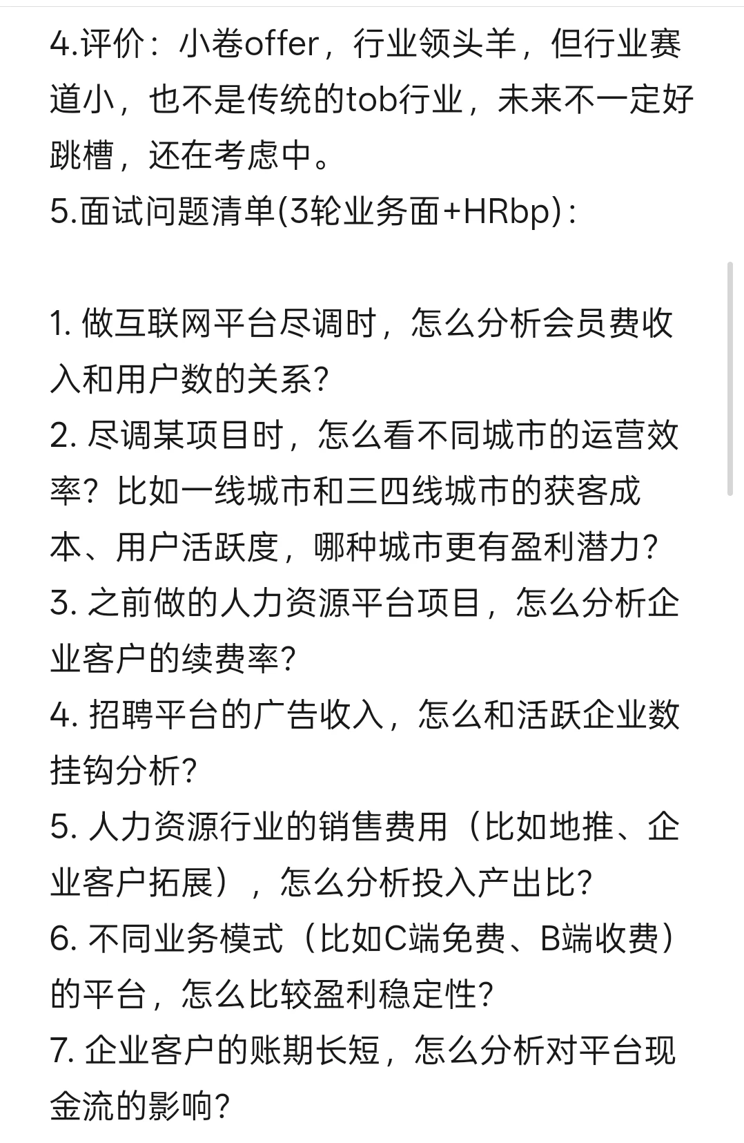4.评价:小卷offer,行业领头羊,但行业赛道小,也不是传统的tob行业,未来不一定好跳槽,还在考虑中。