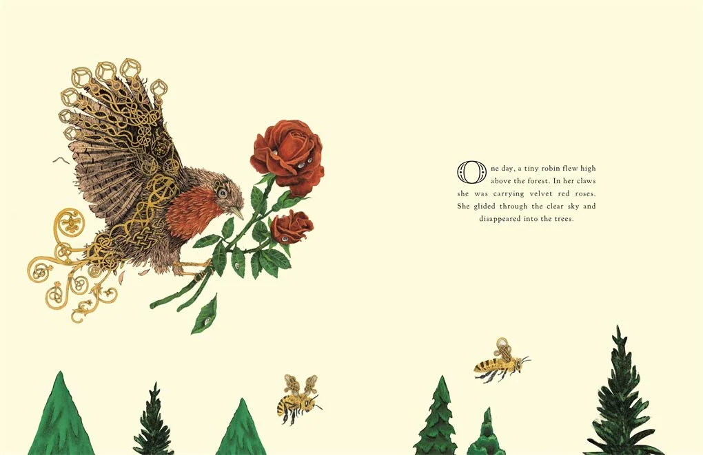 它的好朋友知更鸟常常给它讲旅途中的见闻,森林里的小动物们也会用浆果和树叶为它装扮,可这些都没能抚平它对远方的渴望。