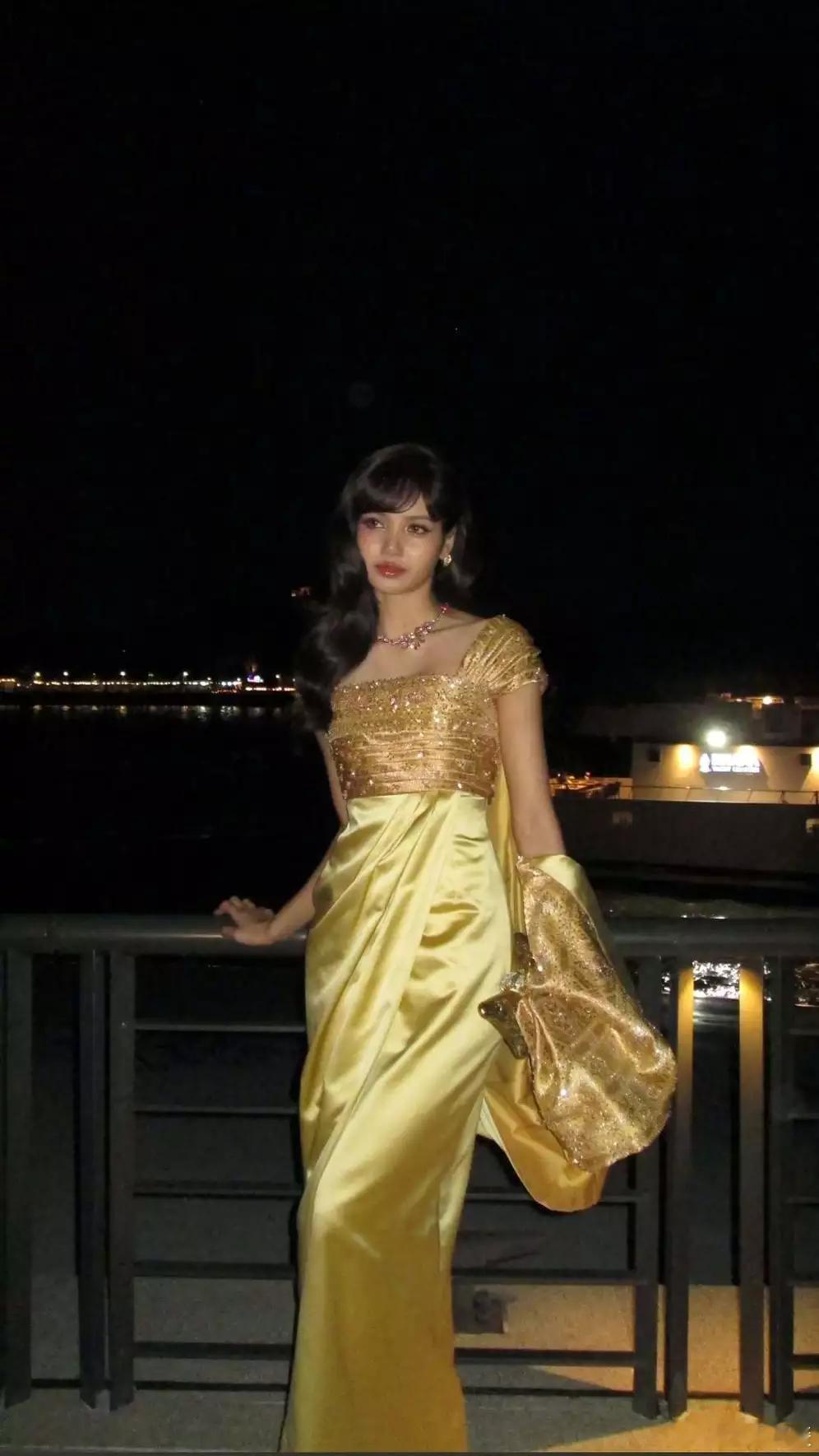文亦娱乐Lisa穿黄色礼服异域风情满满 乌发红唇美艳性感