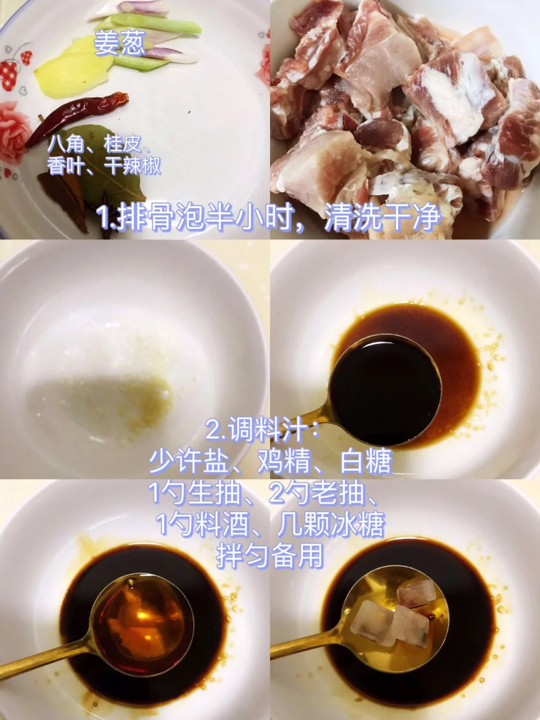 [赞R]食材:排骨、葱姜、八角、桂皮、香叶、干辣椒、冰糖