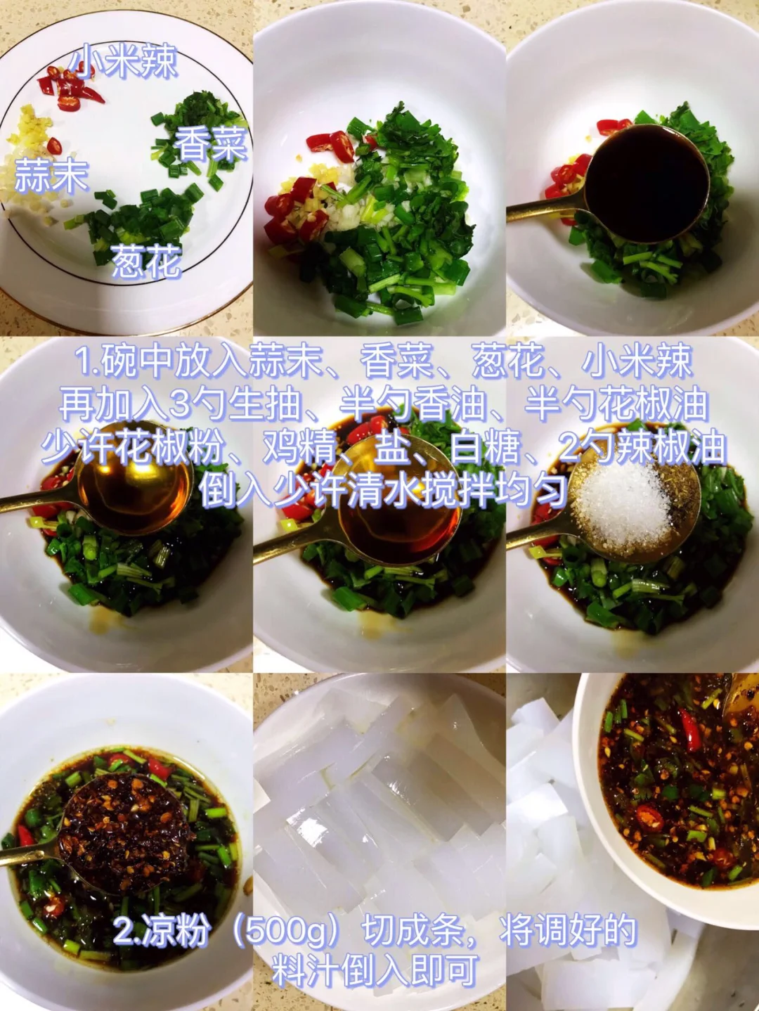 [赞R]食材:凉粉(成品1斤)、小米辣、葱花、蒜末、香菜