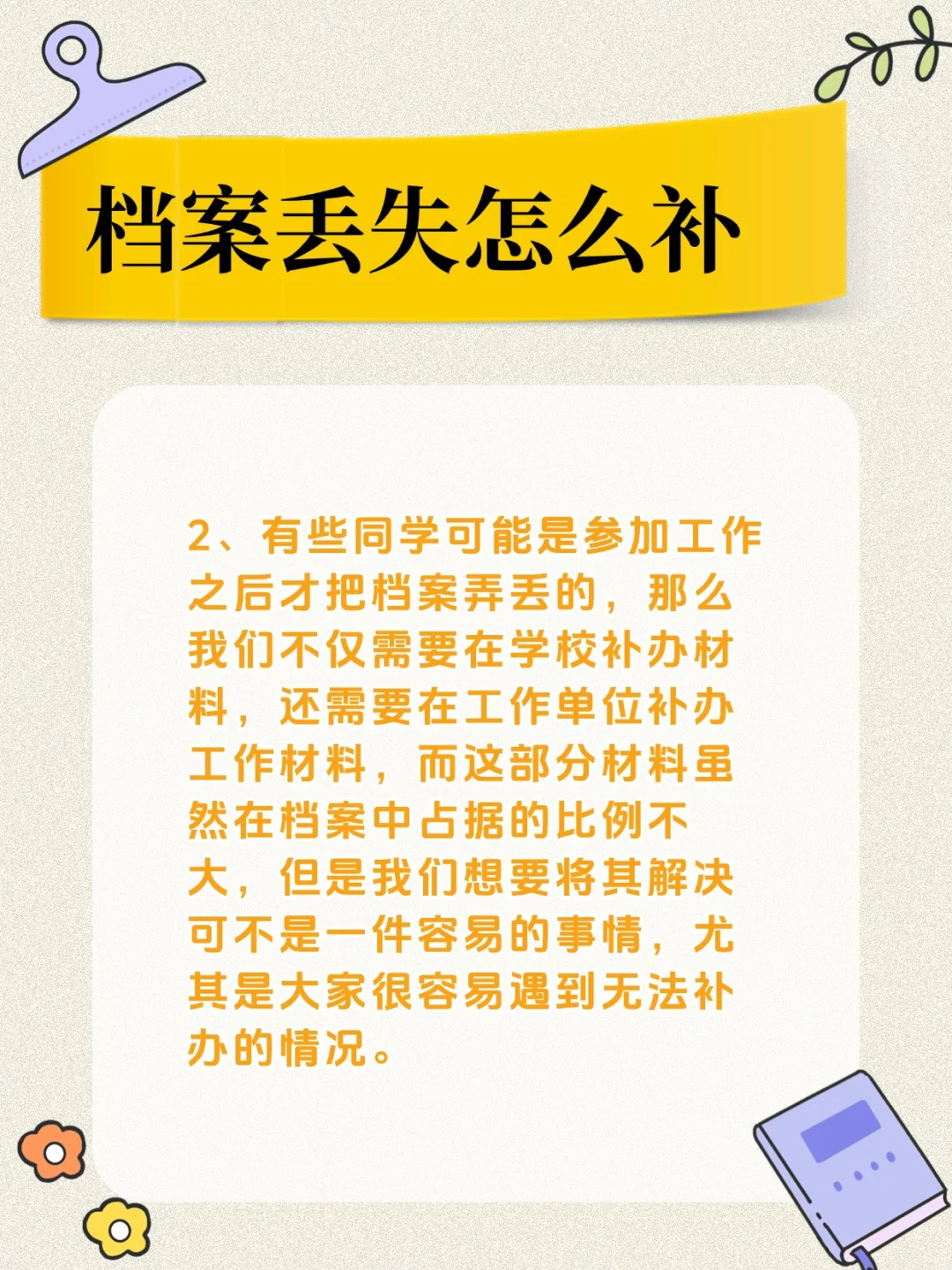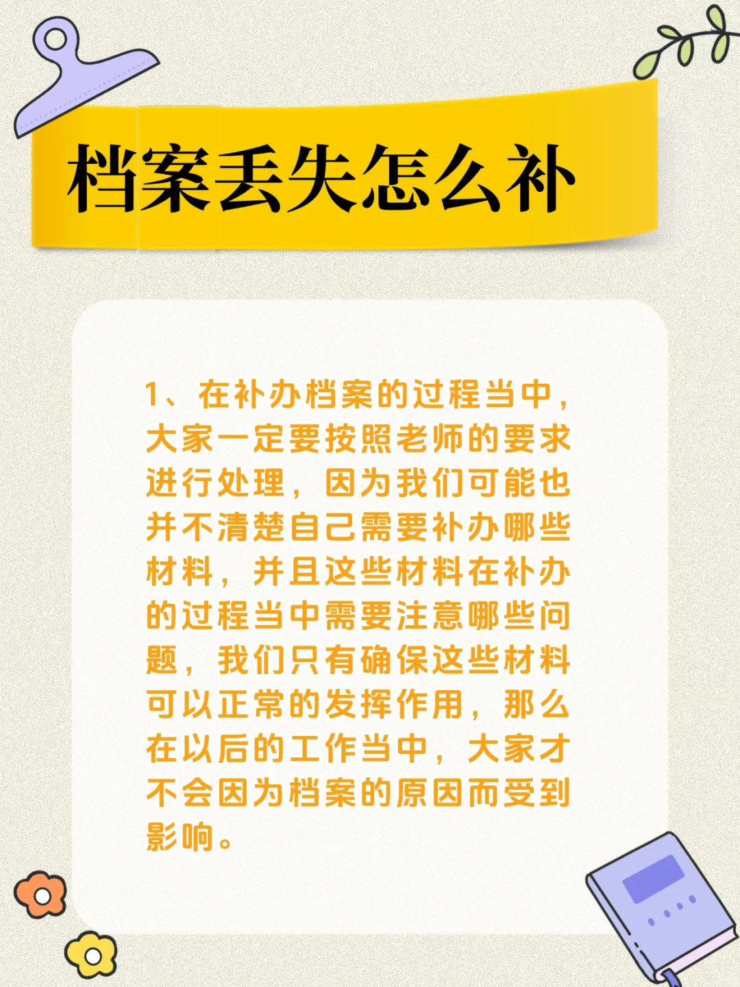 档案丢失怎么补?[萌萌哒R] [一R].在补办档案的过程当中,大家一定要按照老师的要求进行处理,因为我们可能也并不清楚自己需要补办哪些材料,并且这些材料在补办的过程当中需要注意哪些问题,我们只有确保这些材料可以正常的发挥作用,那么在以后的工作当中,大家才不会因为档案的原因而受到影响。 [二R].有些同学可能是参加工作之后才把档案弄丢的,那么我们不仅需要在学校补办材料,还需要在工作单位补办工作材料,而这部分材料虽然在档案中占据的比例不大,但是我们想要将其解决可不是一件容易的事情,尤其是大家很容易遇到无法补办的情况。 [三R].如果我们遇到了材料无法补办的情况,那么可以委托代办机构帮忙处理,我们一定要尽快将档案补办好,这样才能够在工作中可以让他正常的发挥作用,以免因为他的原因而影响到自己的生活。