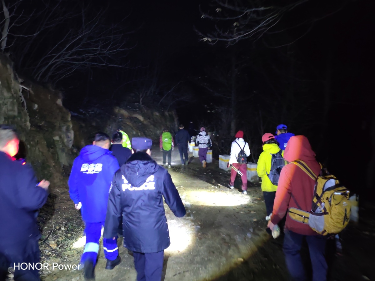 2月1日21时23分,泌阳蓝天救援队接到公安机关转警:付庄乡白云山5名驴友被困深山。队长王建磊立即带领队员集结出发,15分钟内完成装备补充,火速奔赴救援现场。此时山区气温已降至-2℃,夜色深沉,山路崎岖不平,加之驴友可能分散行动,搜救难度极大。“冬季山区夜间气温低、能见度差,很容易发生迷路、失温等危险。”队员孙中元介绍,他们利用热成像无人机展开空中侦察,地面分队分区域协同搜索,经过两小时努力,成功找到5名被困驴友。