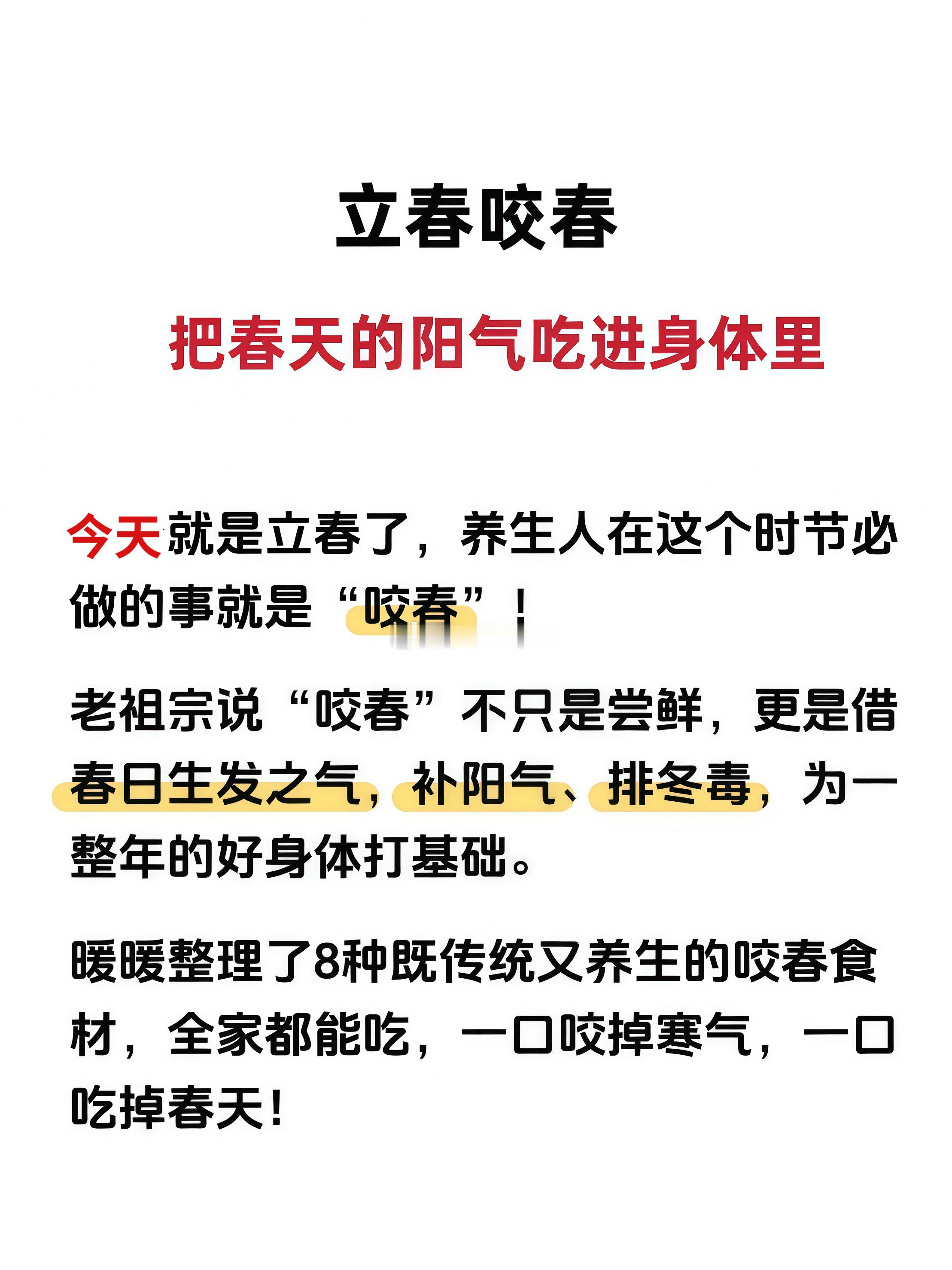 不用刻意追求复杂的仪式立春别忘了咬春一碗煎蛋萝卜汤暖身,一盘荠菜饺子鲜口,一张春饼卷住福气,吃下这“春三鲜”,便是对春天最好的迎接。愿我们在渐暖的春风里,三餐有味,四季安康。