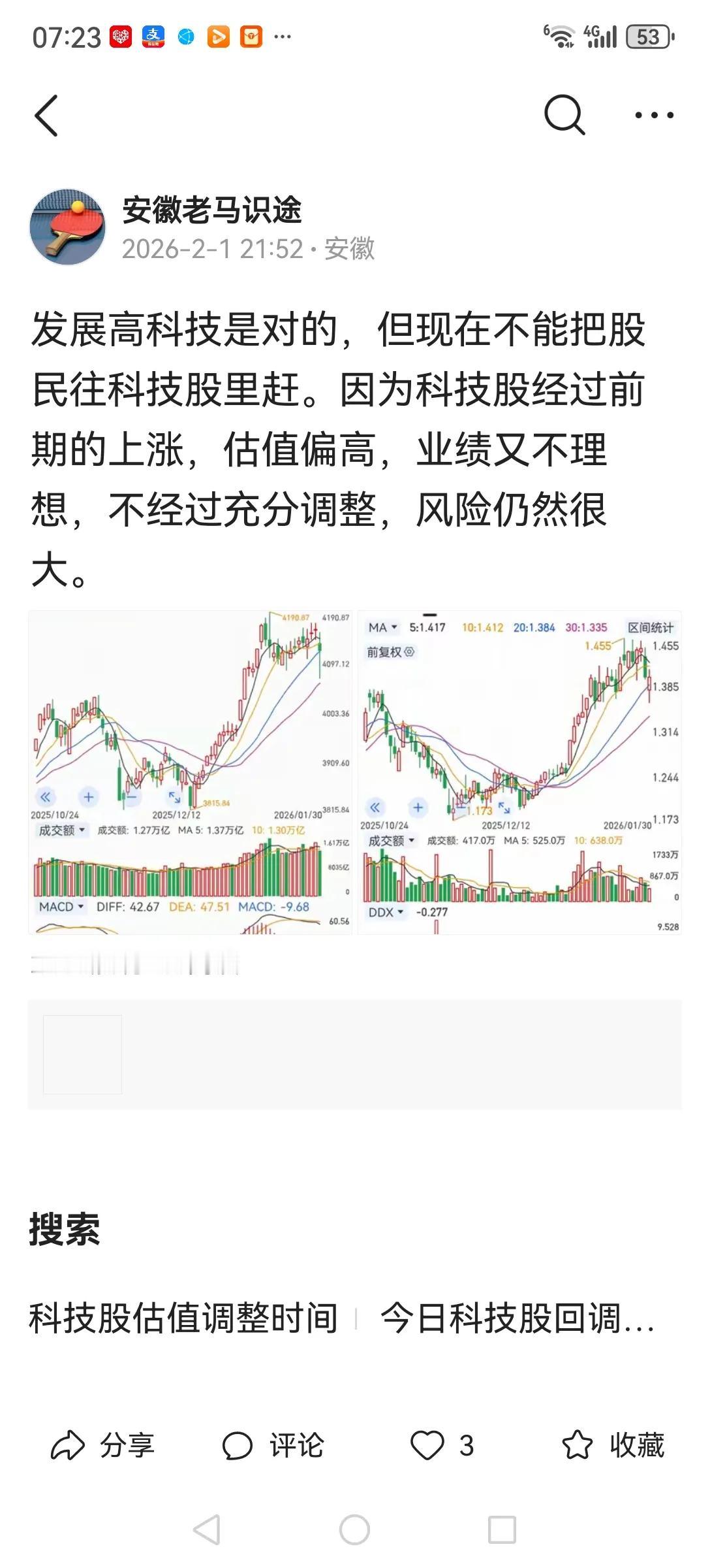 寒王大跌的警示。前两天我就说了,发展高科技是对的,但不能把股民往科技股里赶。因为部分科技股的估值都炒到天上去了,泡沫极大。是泡沫就会破裂,苦就苦了那些盲目追高的投资者了。