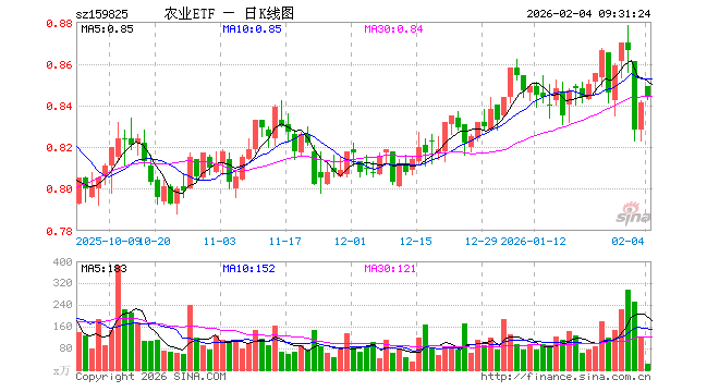 2月4日,农业ETF(159825)开盘涨0.95%,报0.849元。农业ETF(159825)重仓股方面,牧原股份开盘涨0.15%,温氏股份涨0.32%,海大集团涨0.23%,藏格矿业涨0.02%,盐湖股份涨1.59%,亚钾国际涨0.85%,正邦科技涨0.63%,新希望涨0.23%,梅花生物涨0.00%,扬农化工涨0.01%。